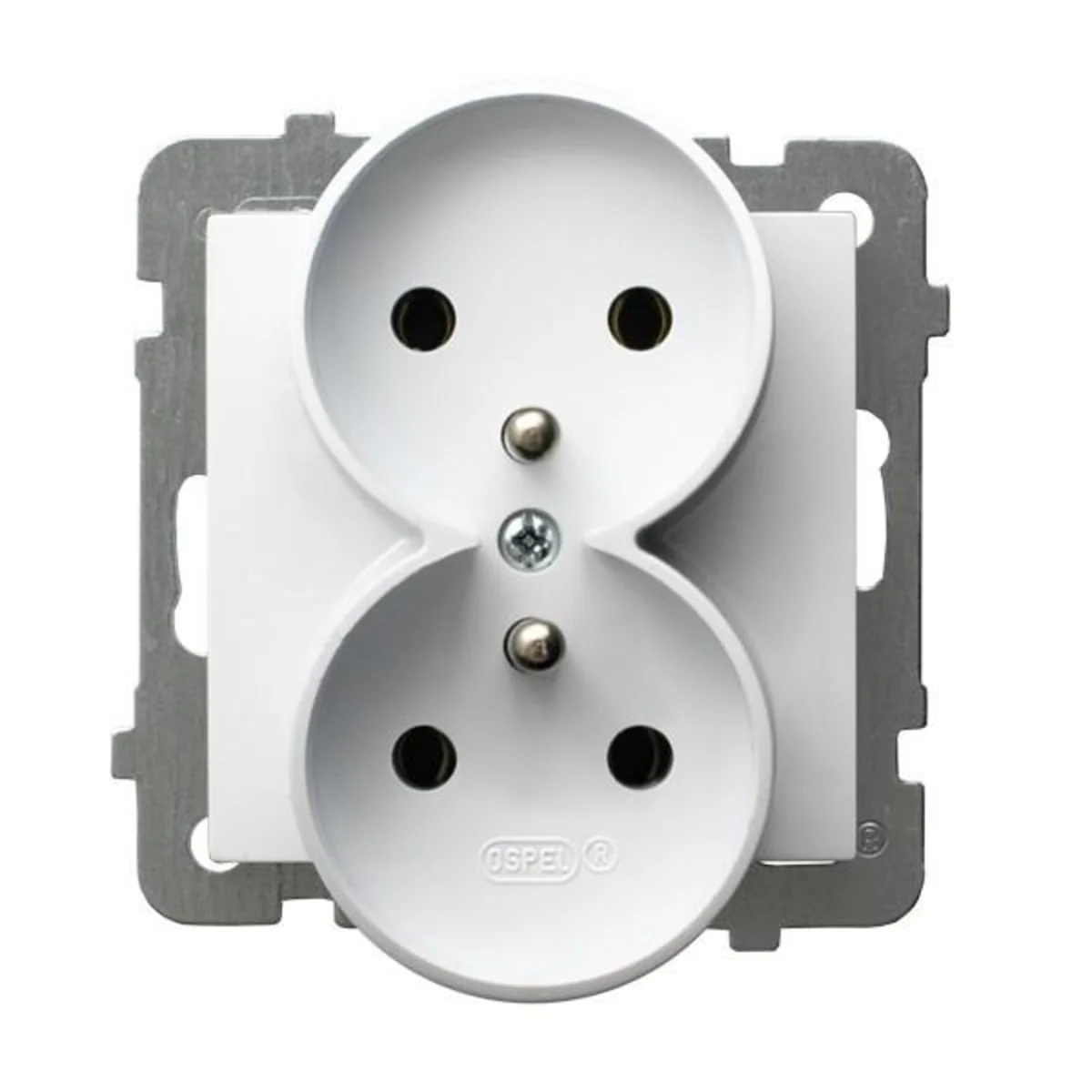 Gniazdo elektryczne podwójne, bez ramki, z uziemieniem.