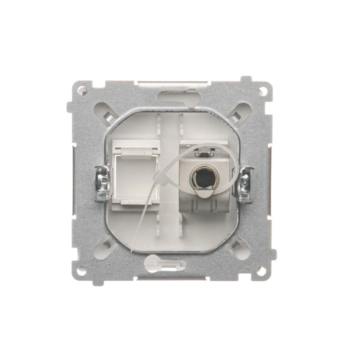 Gniazdo komputerowe pojedyncze ekranowane RJ45 kategoria 6, z przesłoną przeciwkurzową.