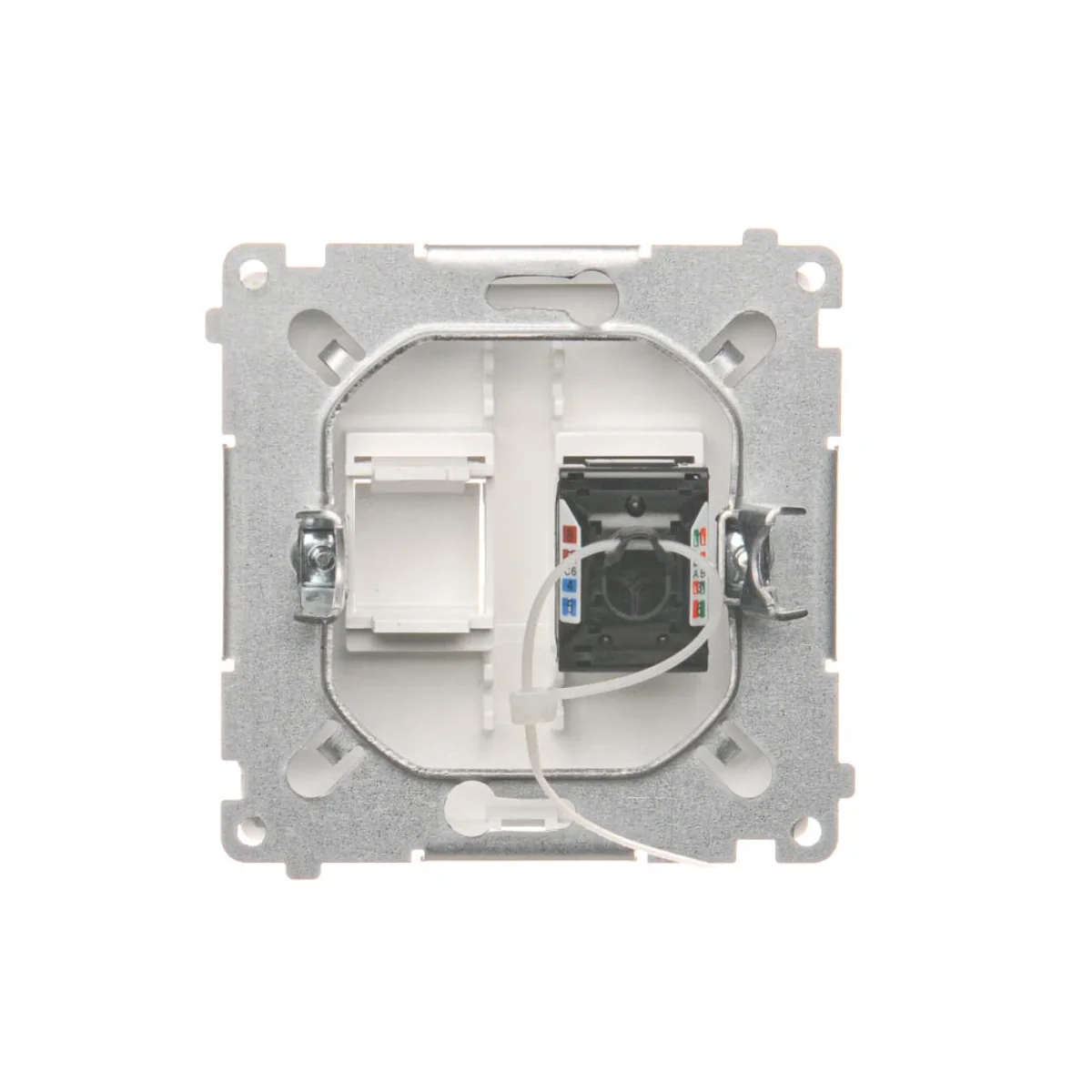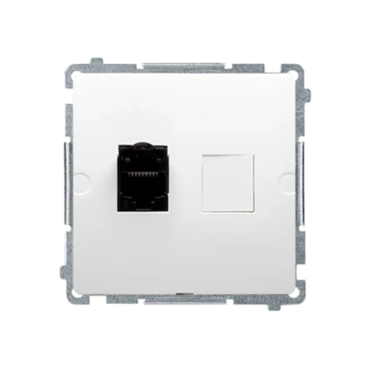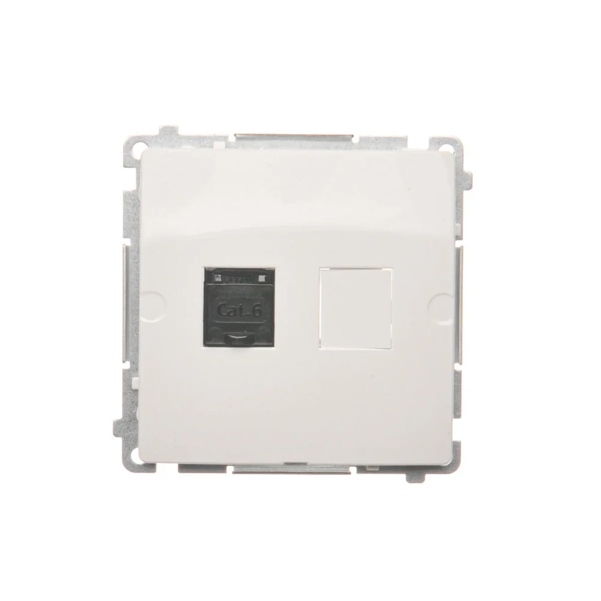 Gniazdo komputerowe pojedyncze RJ45 kategoria 6, z przesłoną przeciwkurzową.