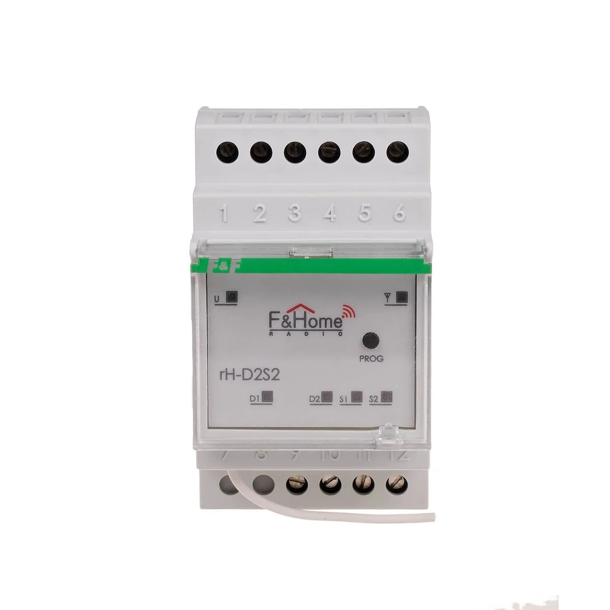 rH-D2S2 ściemniacz dwukanałowy z nadajnikiem dwukanałowym jest połączeniem dwóch ściemniaczy i dwóch wejść stykowych. Moduł wysyła informacje o zwarciu lub rozwarciu styków do systemu oraz steruje dwoma odbiornikami AC230V. Komunikacja z serwerem odbywa się drogą radiową. Moduł posiada dwa fizyczne wejścia do podłączenia dwóch monostabilnych styków bezpotencjałowych, oraz dwa wejścia do podłączenia odbiorników. Obciążenie wejścia mocy może być rezystancyjne (lampy żarowe), indukcyjne (silniki AC i transformatory) i pojemnościowe (lampy jarzeniowe). Regulacja mocy odbywa się na zasadzie modulacji fazy z wyłączeniem w fazie, w zakresie 0-100%.