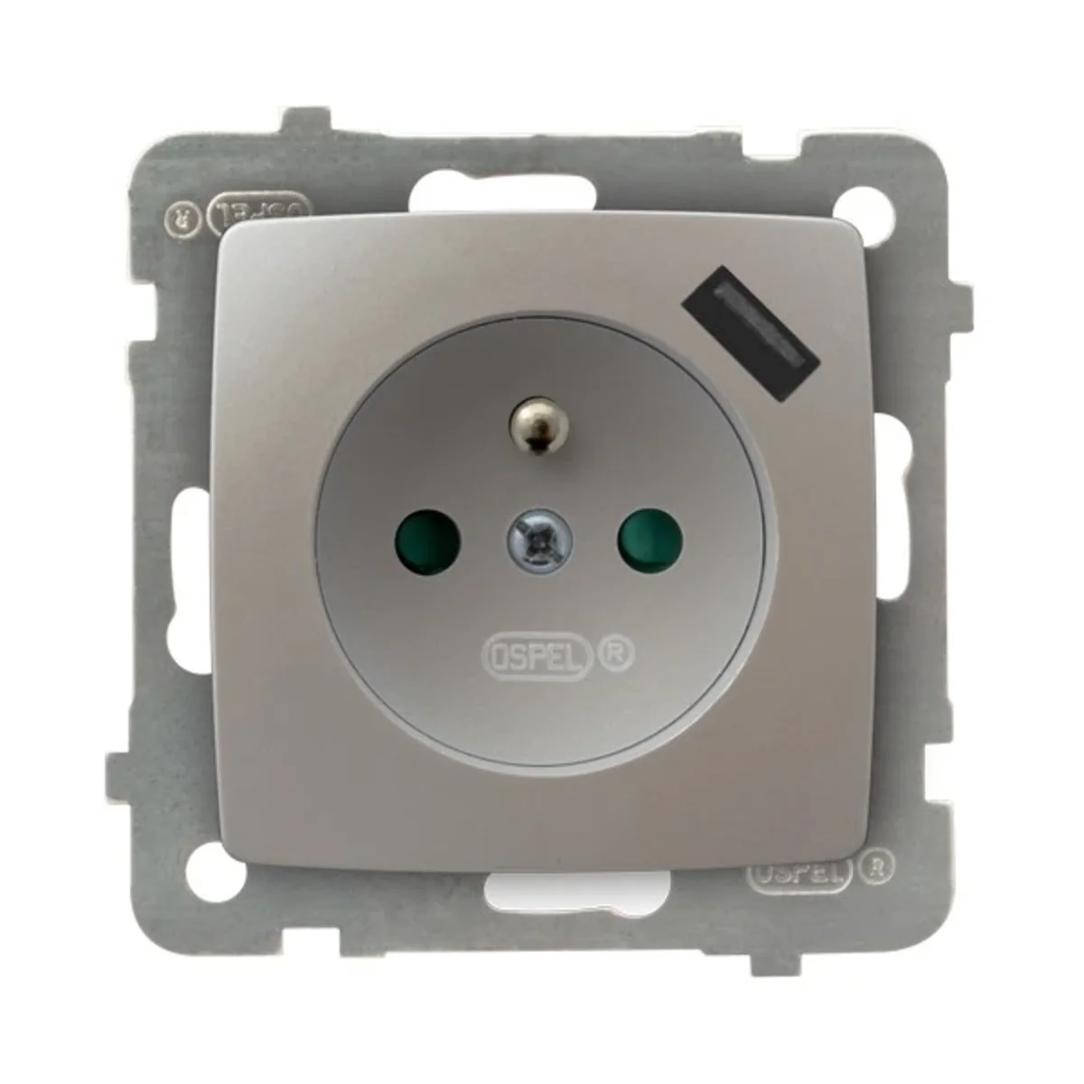 Gniazdo elektryczne z serii Karo, od producenta Ospel. Numer katalogowy produktu to GP-1SZPUSB/M/43.
