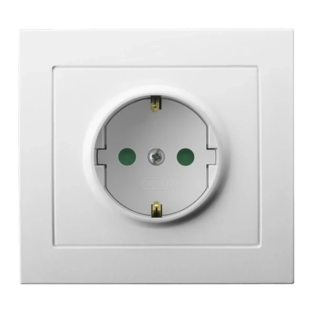 Gniazdo elektryczne pojedyncze, z uziemieniem schuko, z przesłonami torów prądowych.