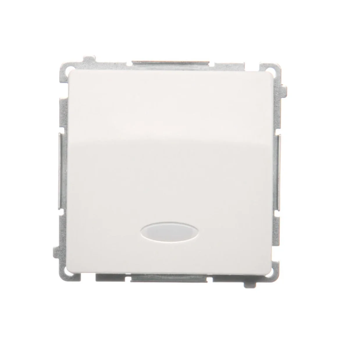 Funkcjonalność i klasyczny wygląd to charakterystyczne cechy serii SIMON BASIC, która sprawdzi się w każdej przestrzeni. Należy do niej łącznik jednobiegunowy z sygnalizacją załączenia LED (niewymienialny, kolor niebieski). Został wykonany z tworzywa sztucznego i PC w kolorze białym. Typ zacisku - szybkozłącza. Napięcie znamionowe wynosi 230V, a prąd znamionowy świetlówkowy - 10AX. Powierzchnia łącznika jest naturalna, a wykończenie błyszczące. Działa na klawisz kołyskowy. Do uzyskania klasy bryzgoszczelności IP44 zastosować ramkę IP44 NEOS: BMRC1B/..; BMRC2B/...lub ramkę IP44 STANDARD: BMR1B/..; BMR2B/...; BMR3B/...