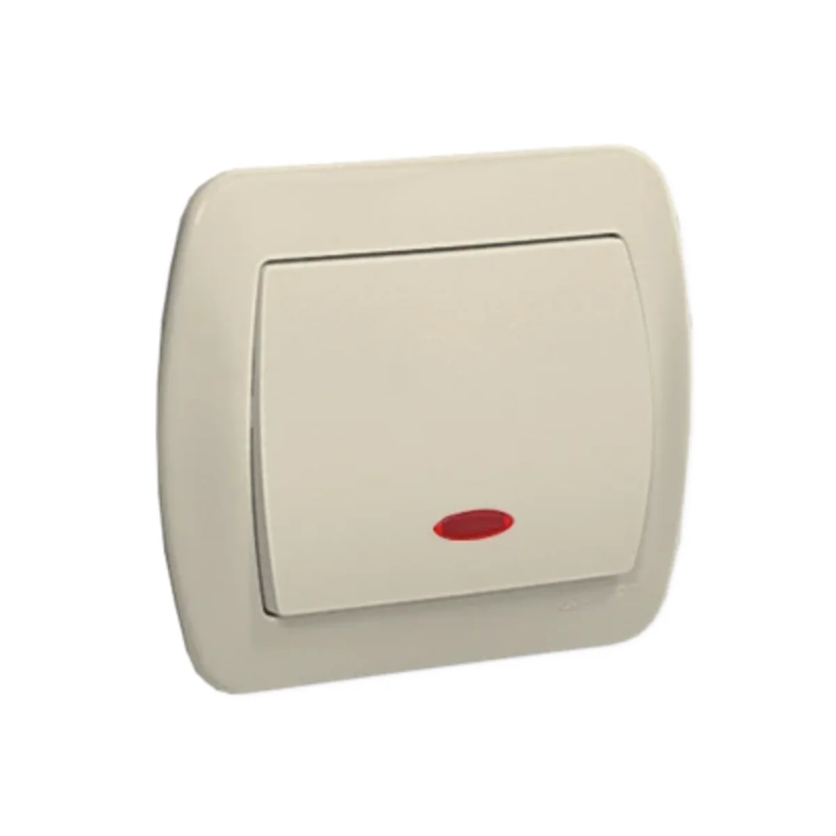 Łącznik jednobiegunowy (bistabilny) z serii Simon Akord. Z wbudowanym podświetleniem w kolorze pomarańczowym.