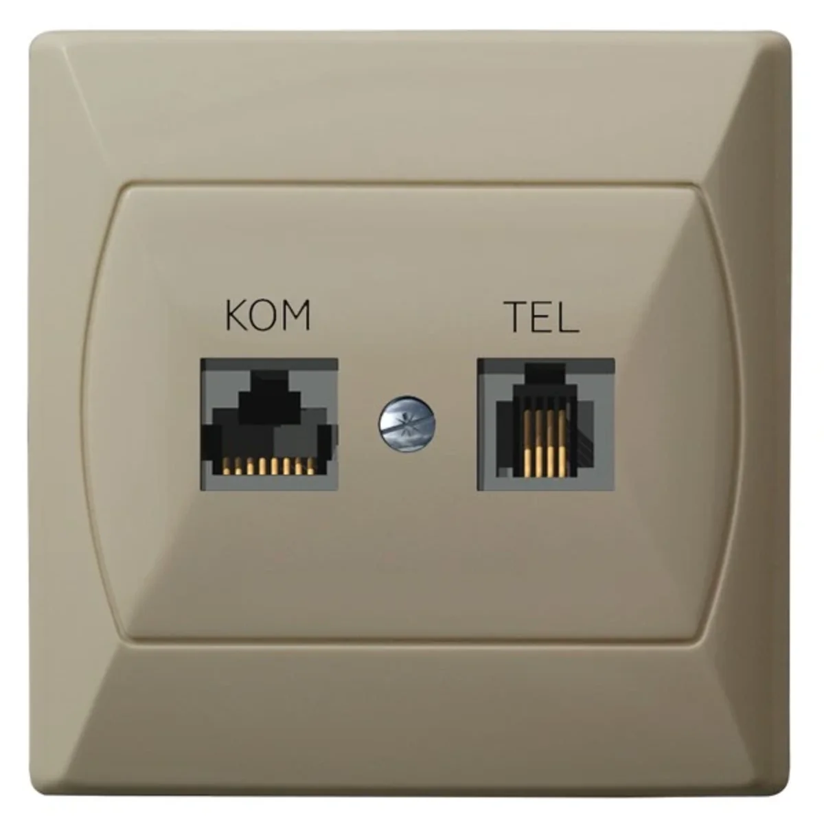 Gniazdo komputerowo-telefoniczne RJ45 kategoria 5e (8-stykowe) + RJ11 (4-stykowe). Służy do podłączenia przewodu telefonicznego oraz przewodu sygnałowego typu skrętka nieekranowanego kategorii 5e.