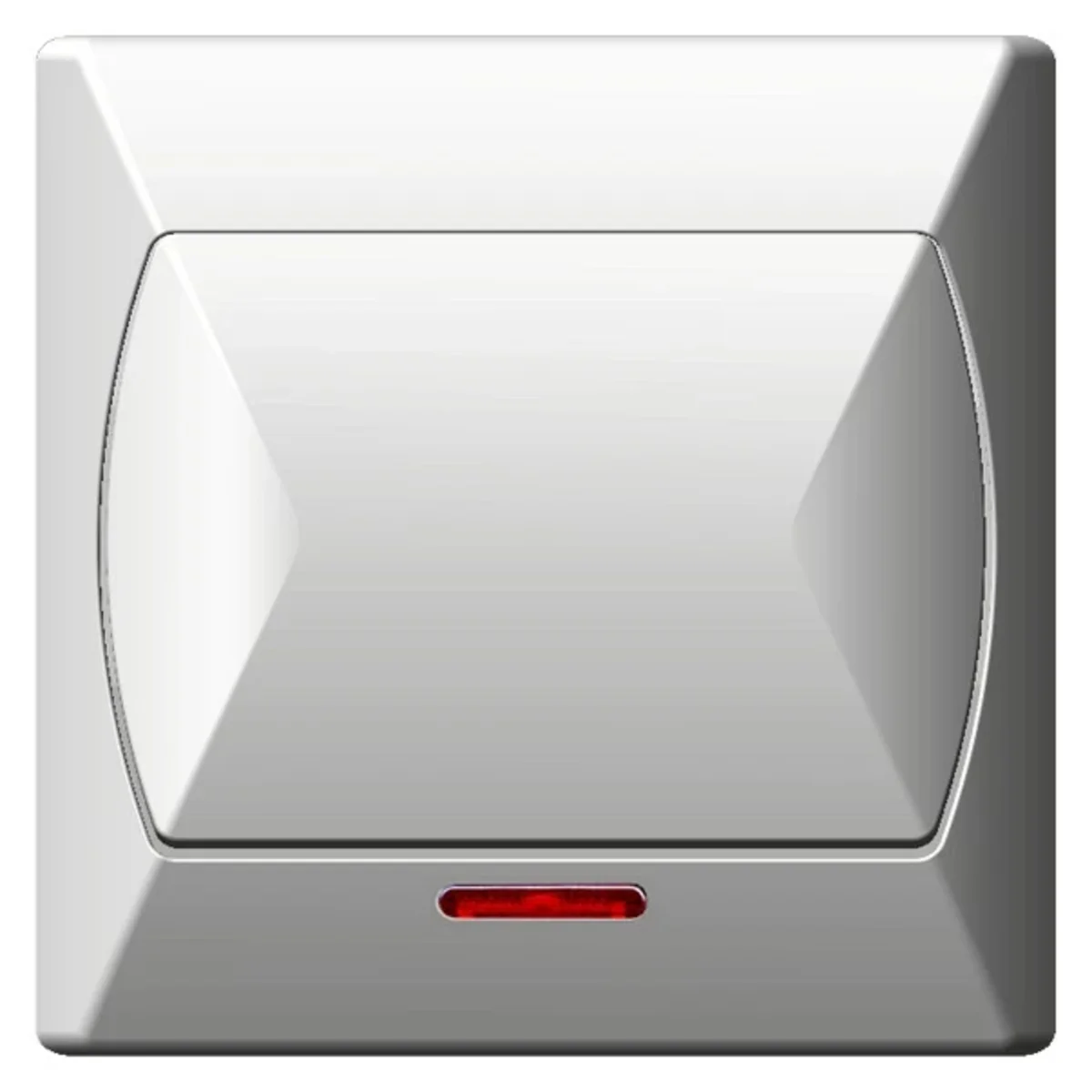 Łącznik jednobiegunowy z podświetleniem, z serii Akcent. Standardowy osprzęt służący do włączania/wyłączania oświetlenia.