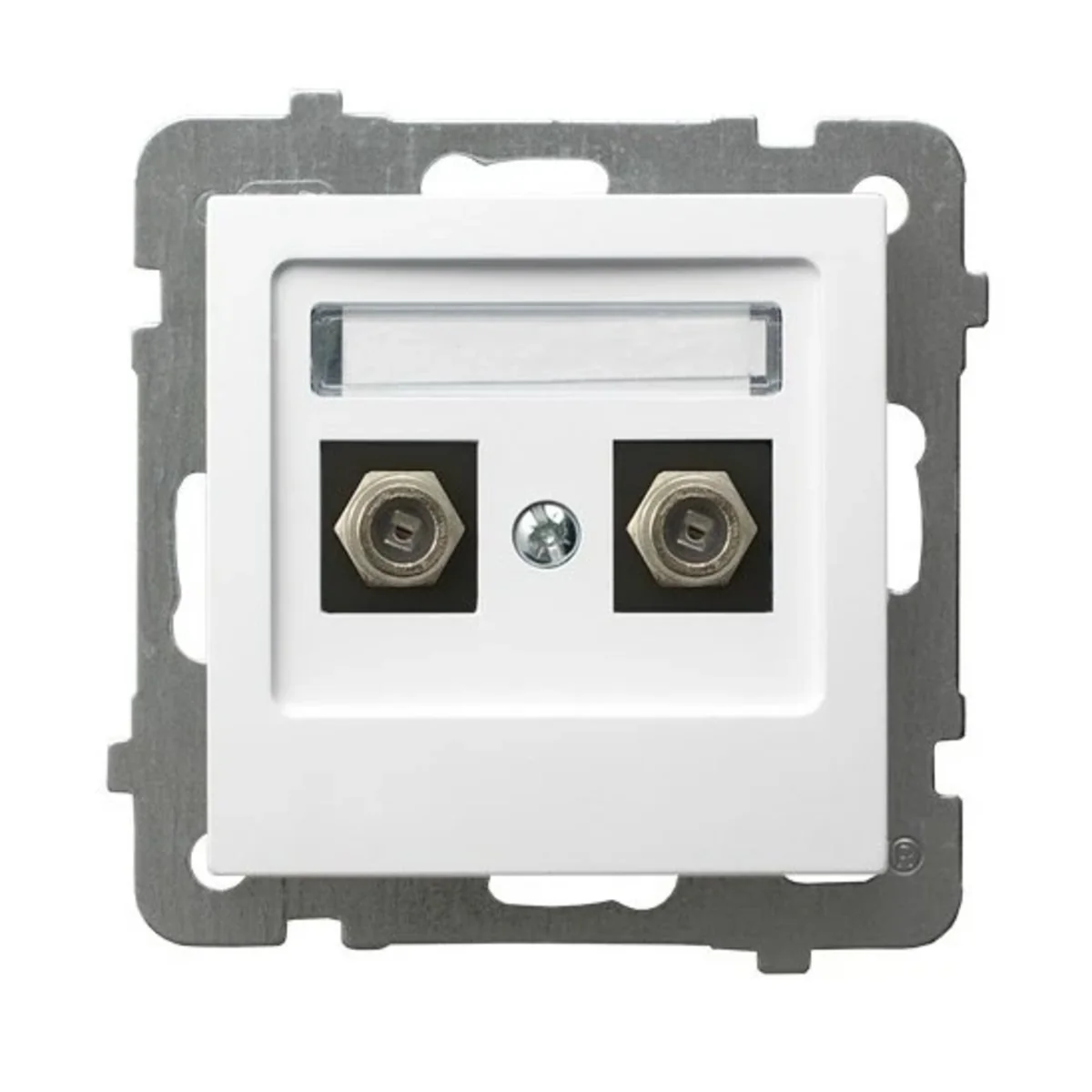 Gniazdo antenowe podwójne typu F. Do wyposażenia w ramkę.