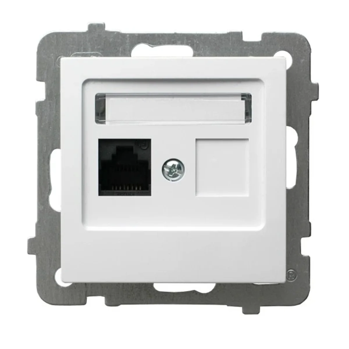 Gniazdo komputerowe pojedyncze RJ-45 kategoria 5e MMC. Służy do podłączenia przewodu sygnałowego typu skrętka nieekranowanego kategorii 5e. Szybkość przesyłania danych to 1Gb/s.