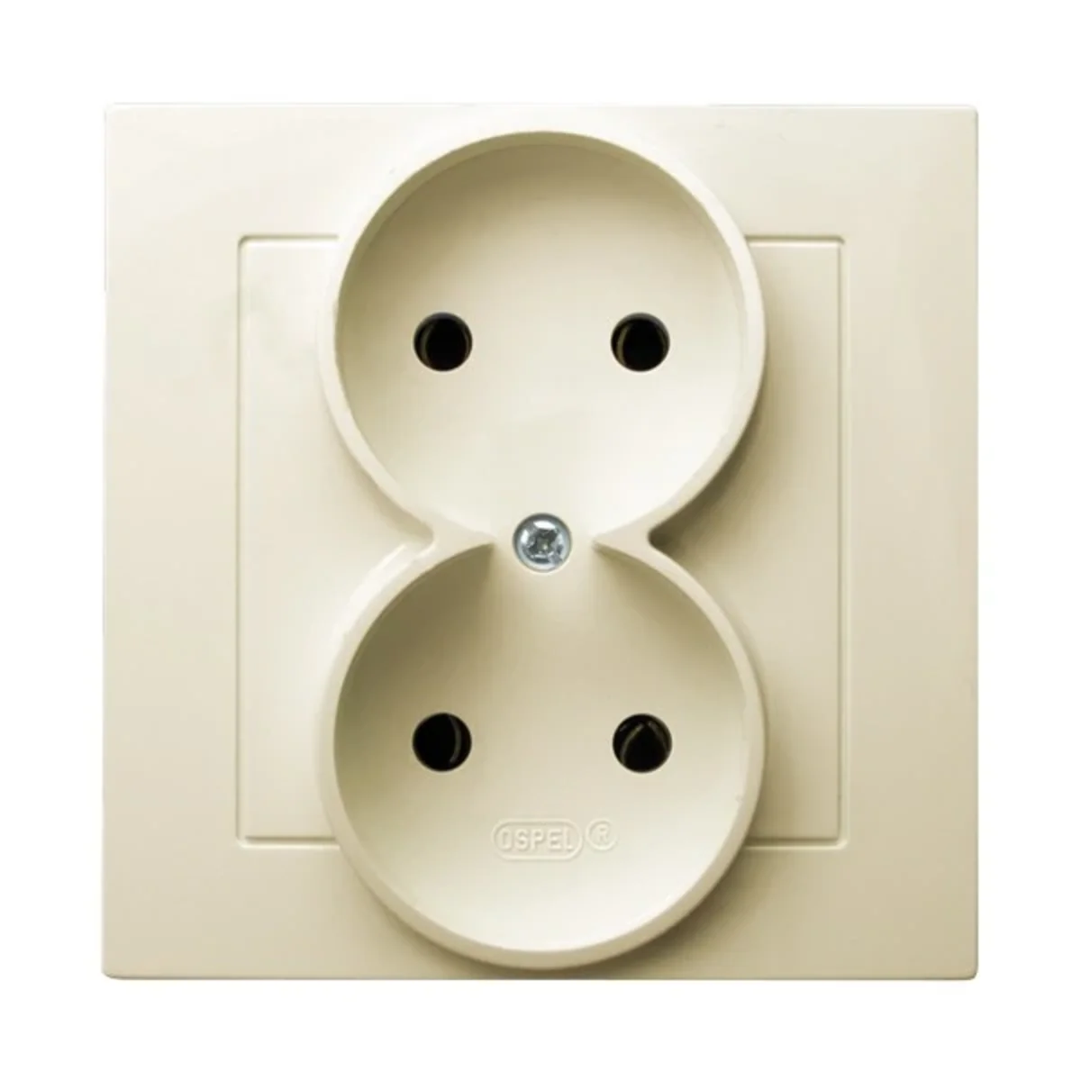Gniazdo elektryczne podwójne kompletne z ramką.
