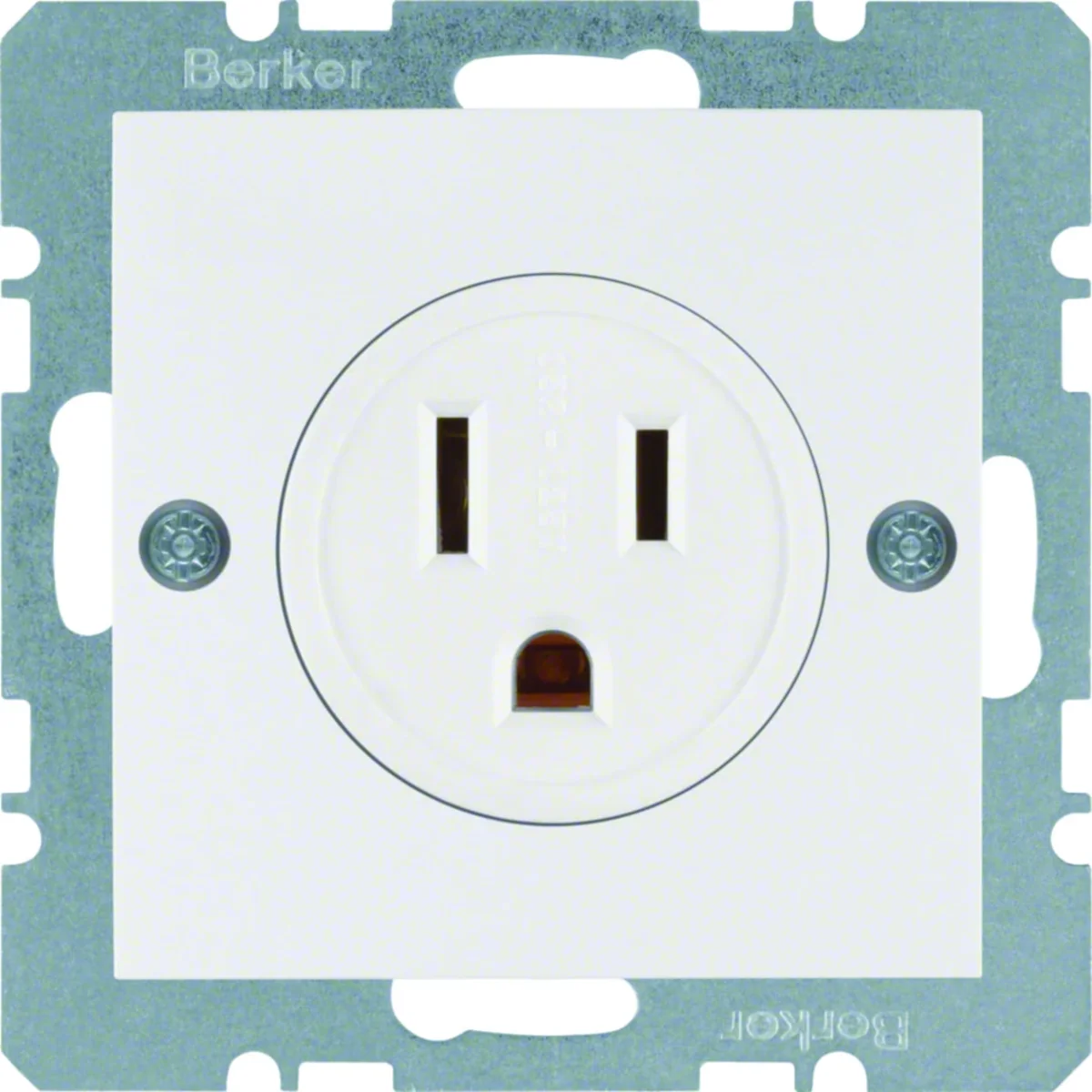 Gniazdo z uziemieniem, standard USA/KANADA, norma NEMA 5-15 R, z serii Berker B.Kwadrat/B.3/B.7/S.1. Z zaciskami śrubowymi.