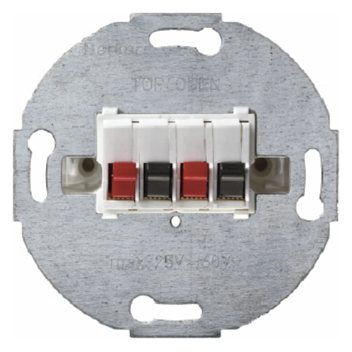 Mechanizm gniazda głośnikowego stereofonicznego z serii one.platform, od producenta Berker. Numer katalogowy produktu to 457309.