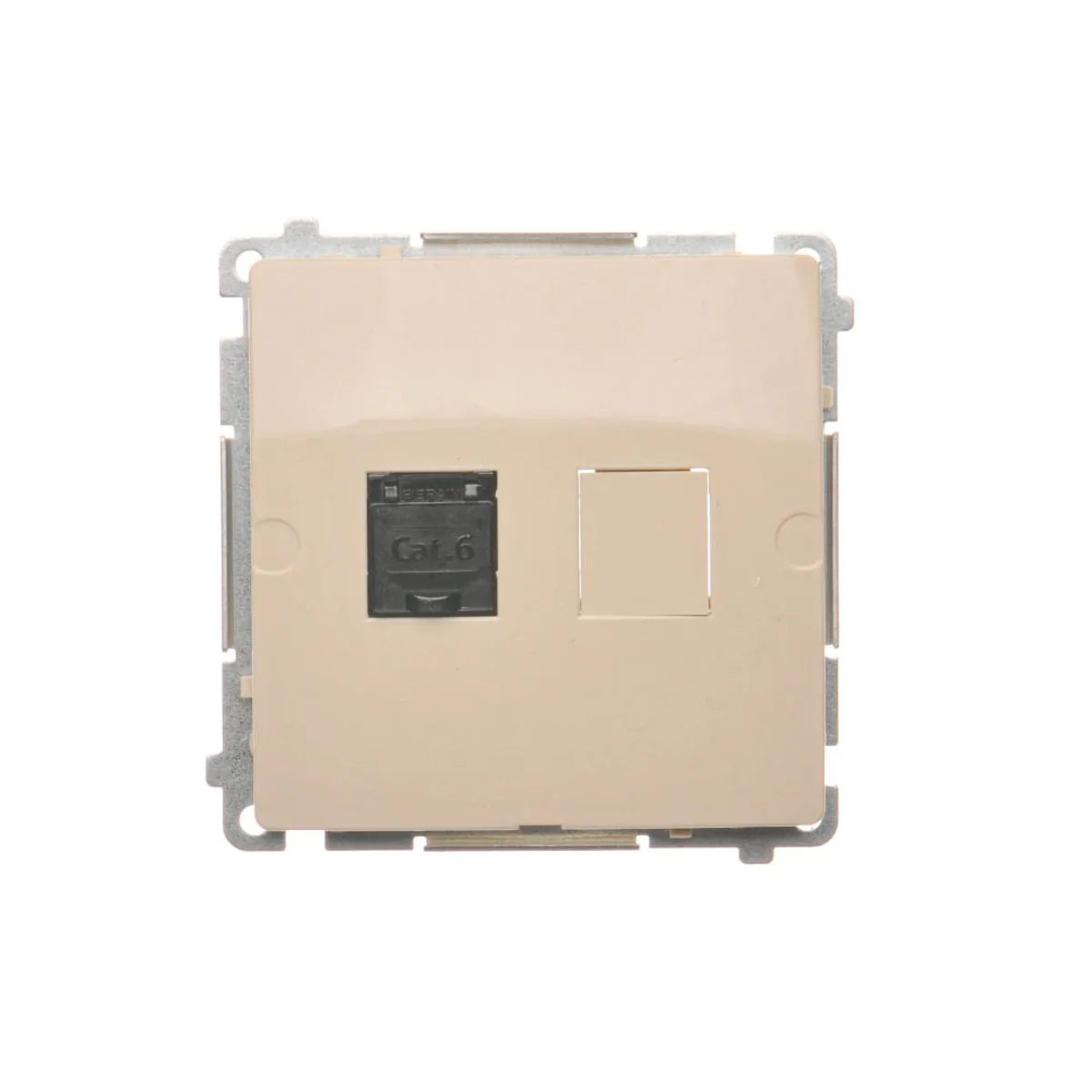 Gniazdo komputerowe pojedyncze RJ45 kategoria 6, z przesłoną przeciwkurzową.