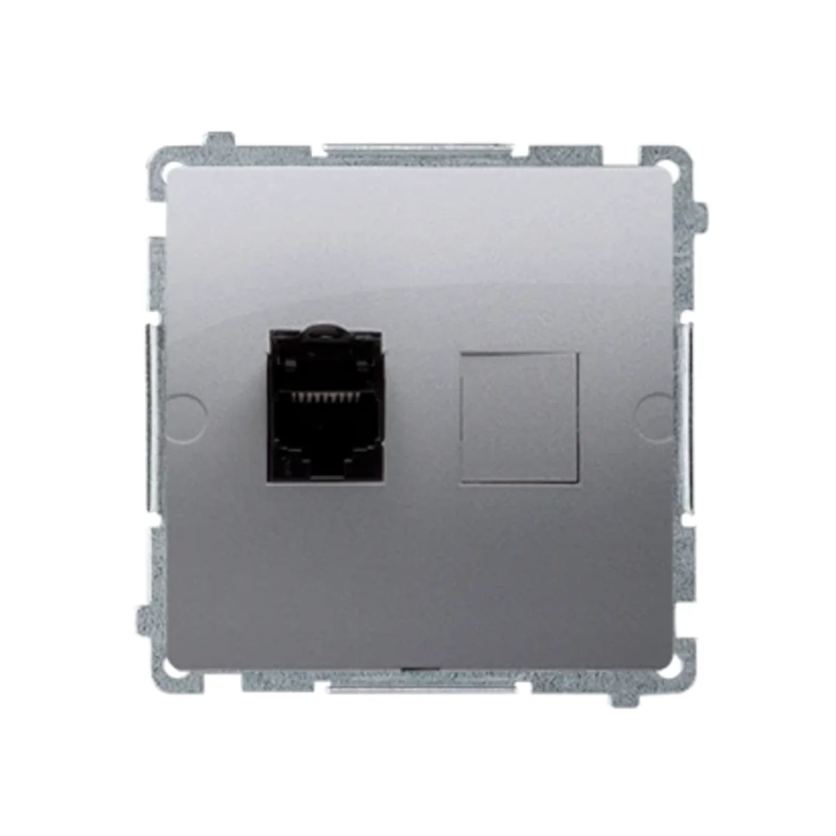 Gniazdo komputerowe pojedyncze RJ45 kategoria 6, z przesłoną przeciwkurzową.
