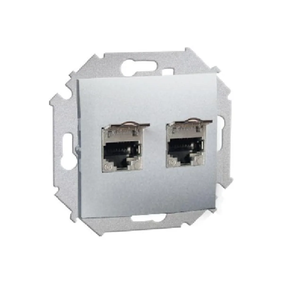 Gniazdo komputerowe podwójne RJ45 kategoria 5e, z przesłoną przeciwkurzową.