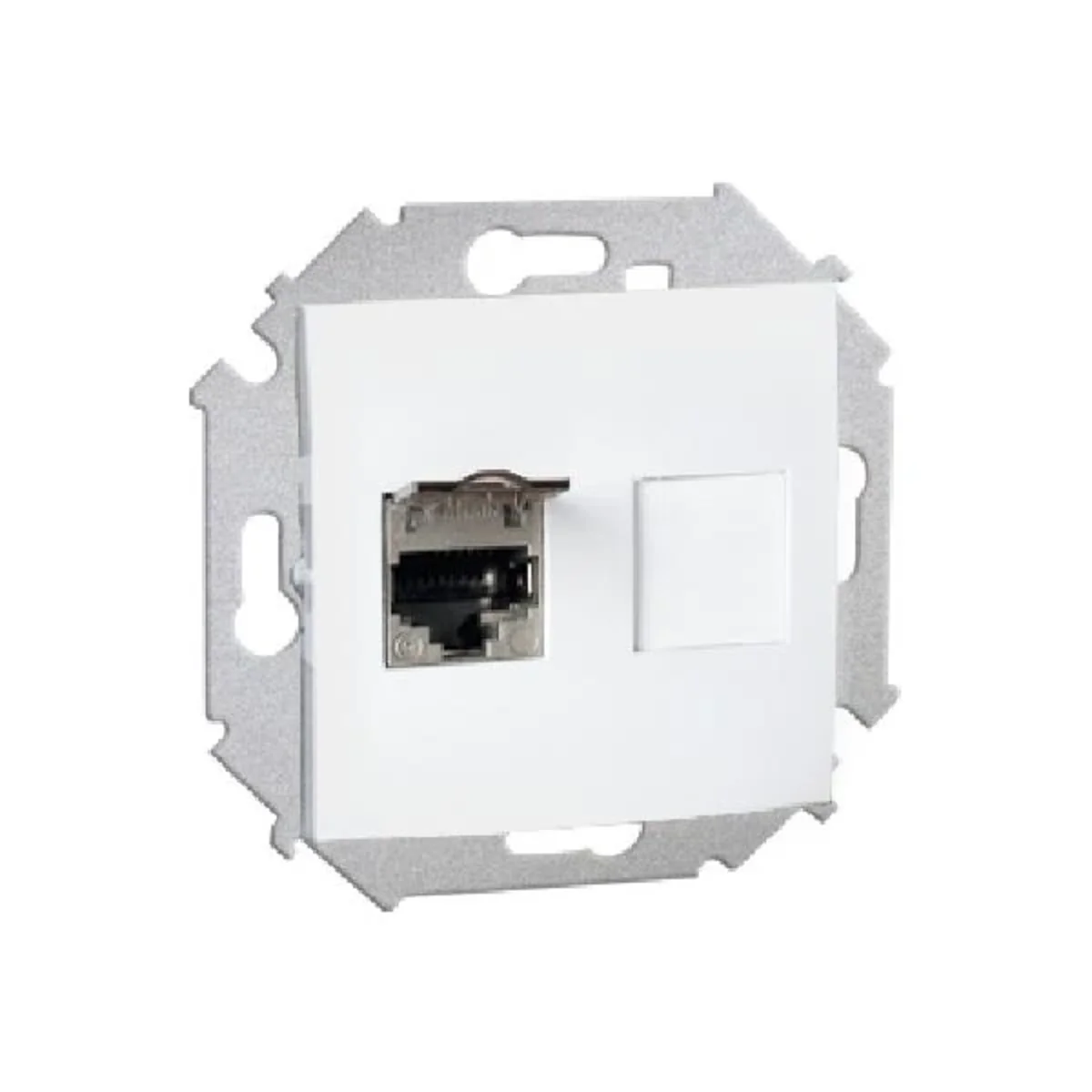 Gniazdo komputerowe pojedyncze ekranowane RJ45 kategoria 6, z przesłoną przeciwkurzową.