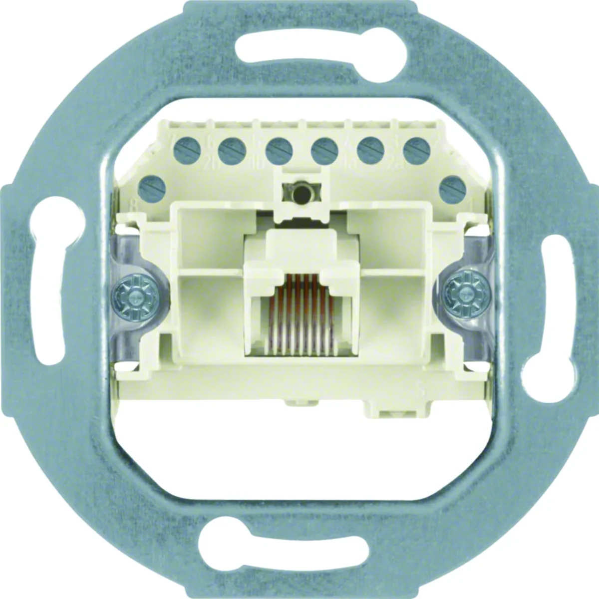 Mechanizm gniazda komputerowego internetowego z serii one.platform, od producenta Berker. Numer katalogowy produktu to 534538.
