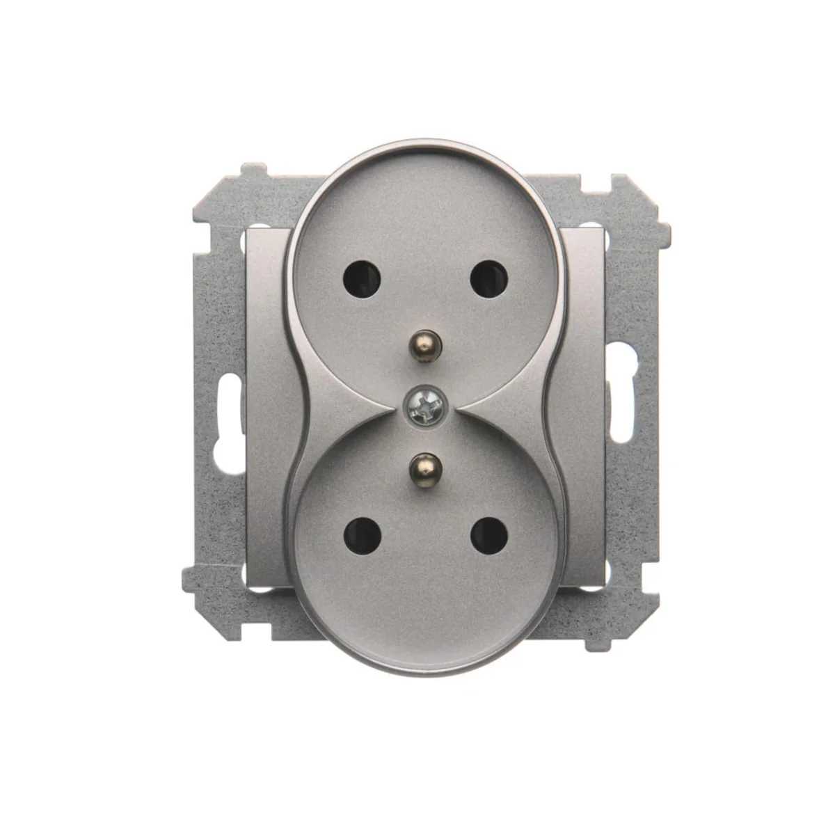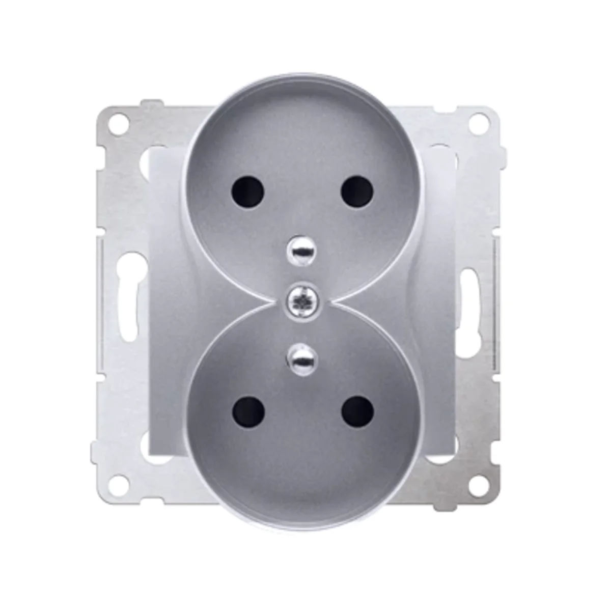 Gniazdo wtyczkowe podwójne z uziemieniem z przesłonami (moduł) 16A 250V srebrny (metalik) DGZ2MZ.01/43