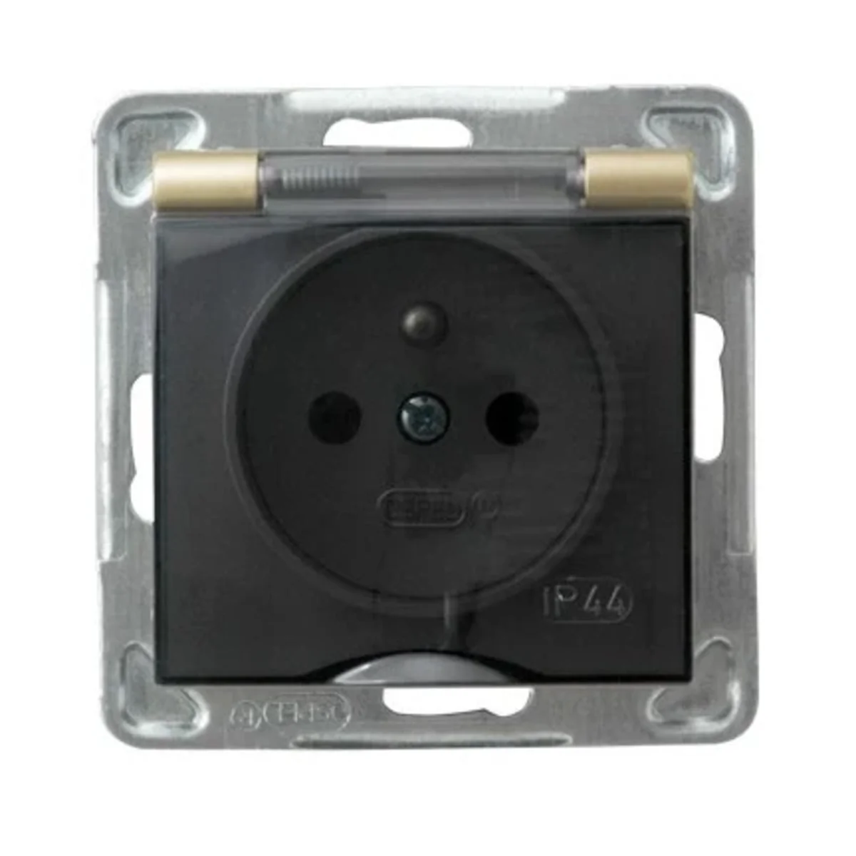 Gniazdo hermetyczne wyposażone w klapkę, z uziemieniem. Należy zastosować ramkę.