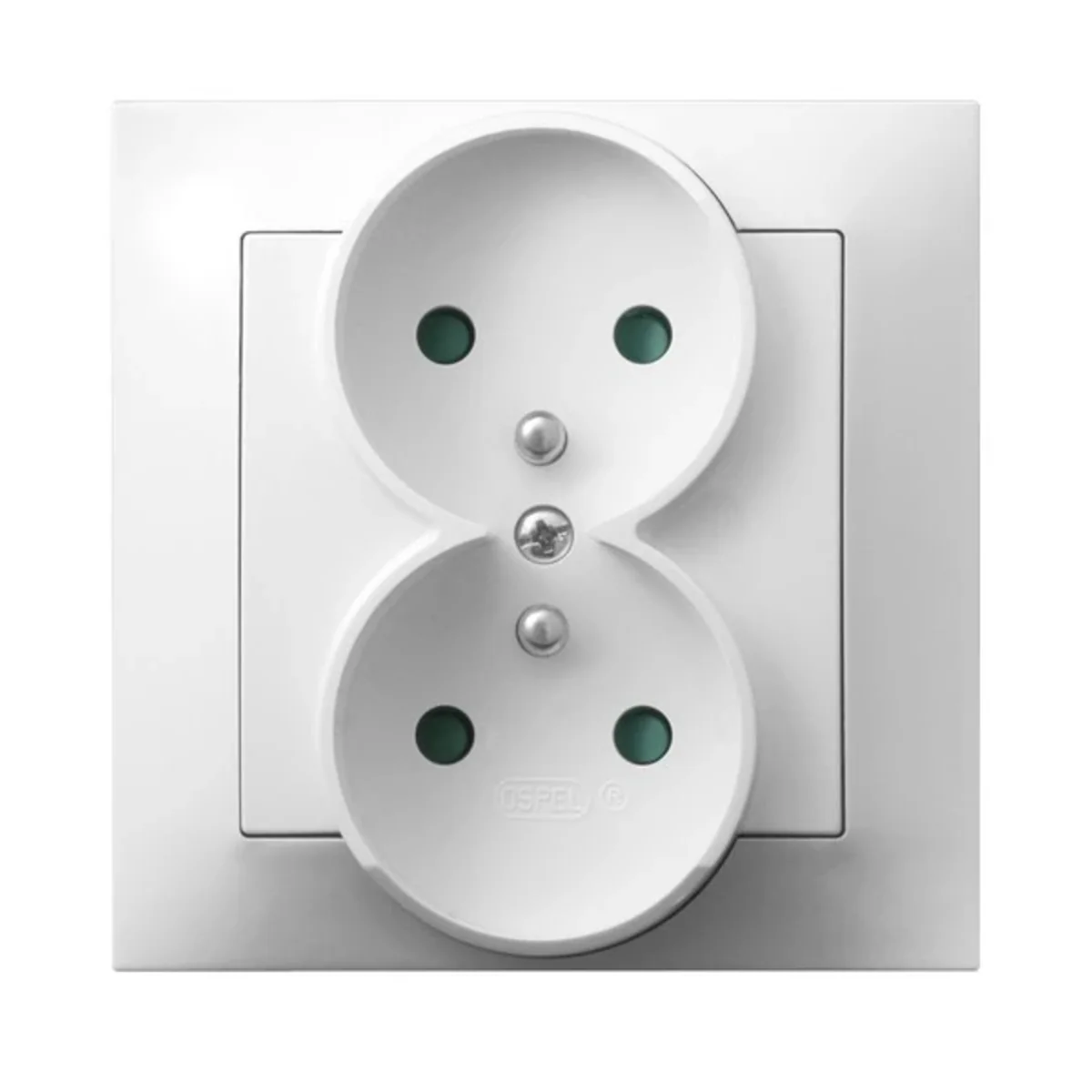 Gniazdo elektryczne podwójne, z uziemieniem, z przesłonami torów prądowych.