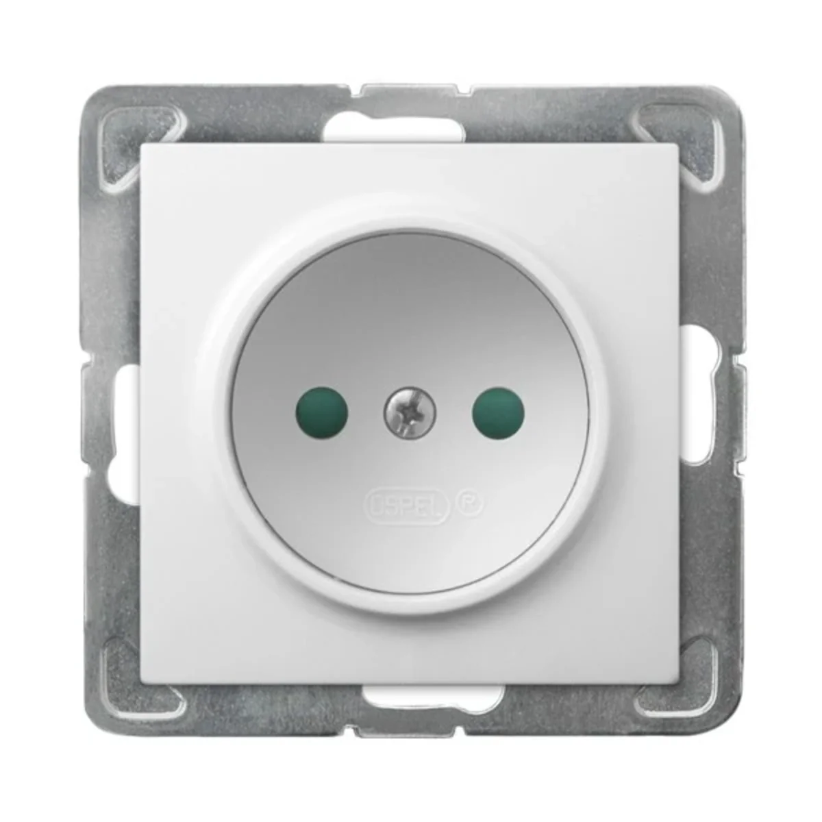 Gniazdo elektryczne pojedyncze, bez uziemienia, z przesłonami torów prądowych.