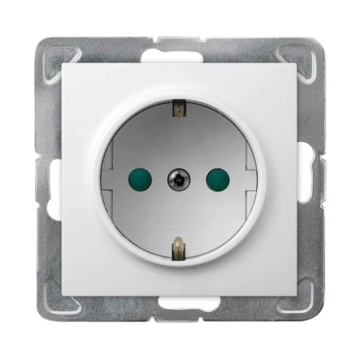 Gniazdo elektryczne pojedyncze, z uziemieniem schuko, z przesłonami torów prądowych.