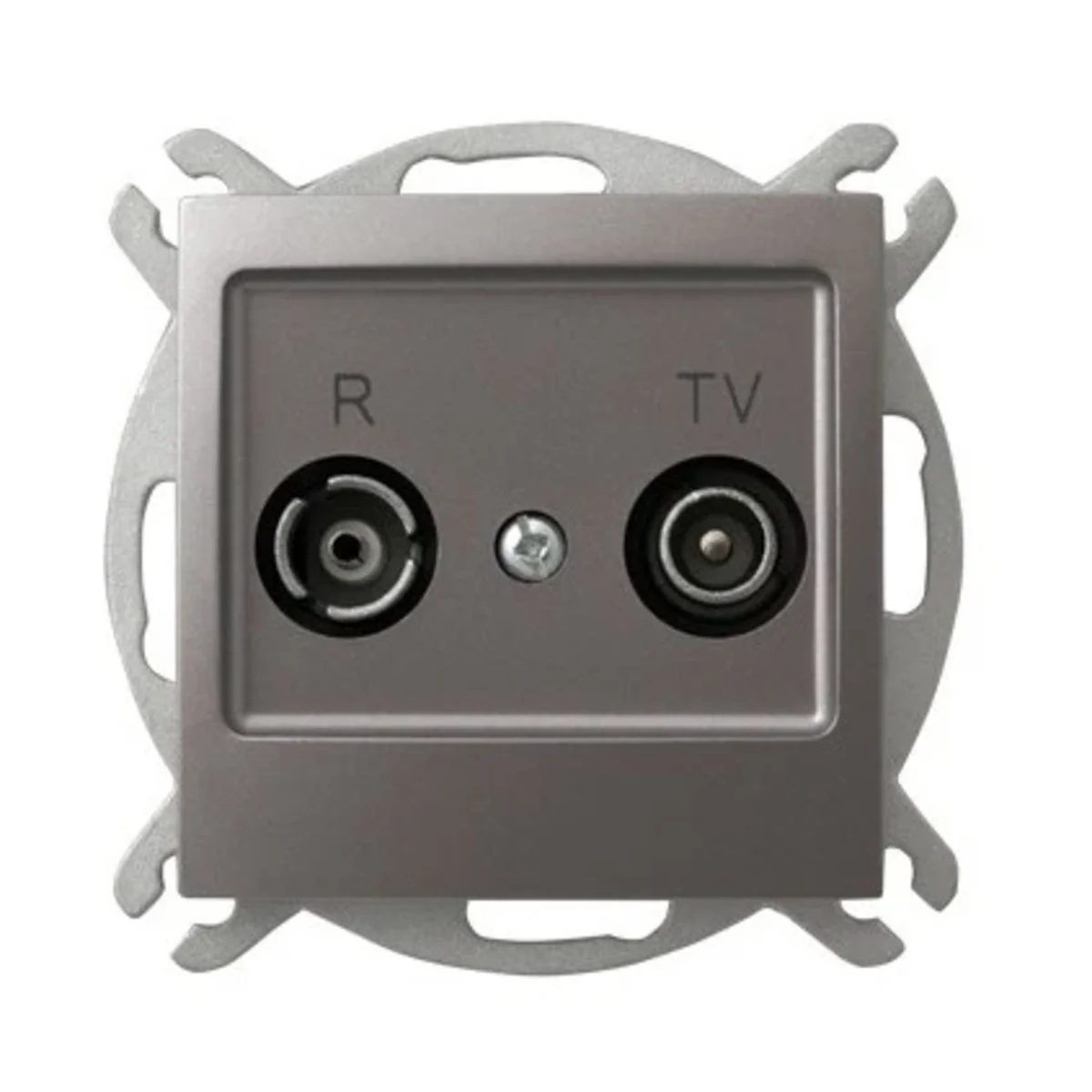 Gniazdo antenowe RTV przelotowe. Jest przeznaczone do instalacji szeregowej, w której jeden kabel przechodzi przez różne odbiorniki. Do wyposażenia w ramkę.