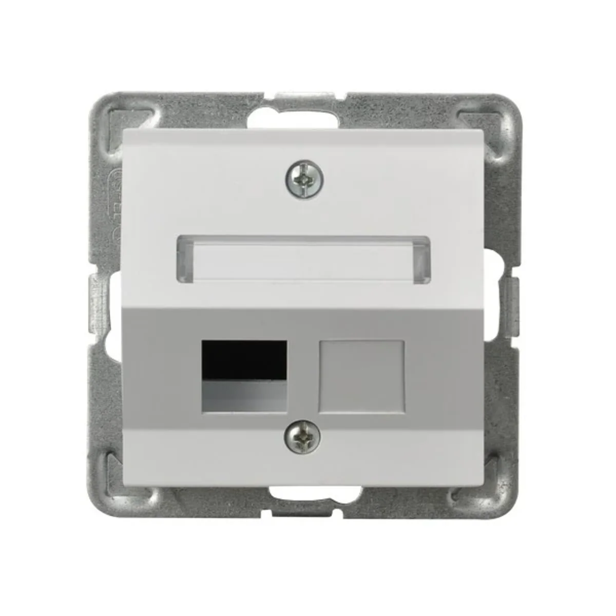 Obudowa gniazda pojedynczego typu Keystone skośna z serii Impresja, od producenta Ospel. Numer katalogowy produktu to GPK-1YS/P/00.