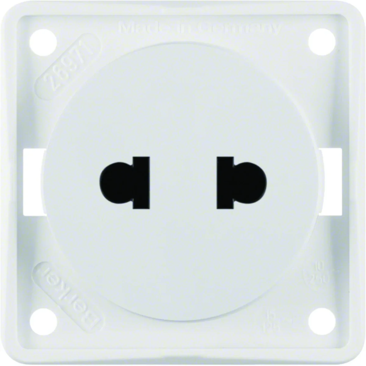 Gniazdo bez uziemienia, "Standard Euro-Amerykański", z serii Berker Integro Flow, która dzięki swemu minimalistycznemu designowi, szybkiej i łatwej instalacji stanowi idealne rozwiązanie do zastosowania w meblach kuchennych, w branży sanitarnej oraz wszędzie tam, gdzie wymagana jest kompaktowa budowa oraz wszechstronna funkcjonalność. Charakteryzuje się małymi wymiarami przystosowanymi do montażu w meblach, pojazdach technicznych, przyczepach kempingowych oraz łodziach. Główna linia projektowa: Berker Integro mechanizmy modułowe.