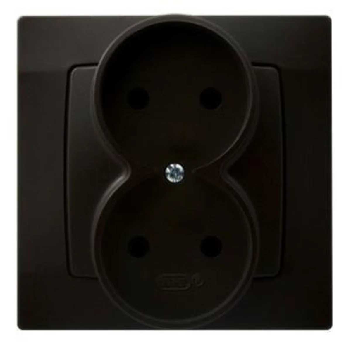 Gniazdo elektryczne podwójne, bez uziemienia, wyposażone w ramkę.
