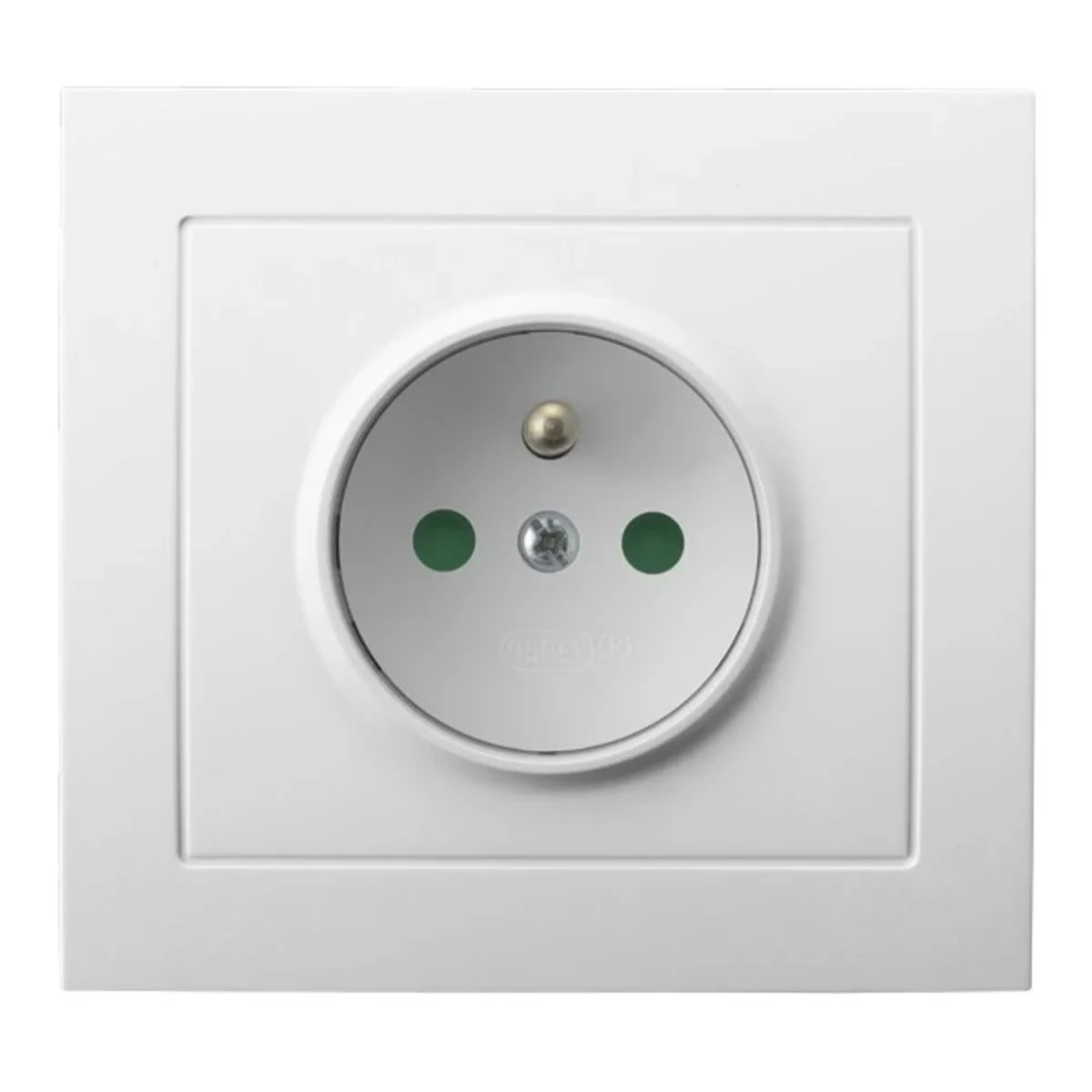 Gniazdo elektryczne pojedyncze, z uziemieniem, z przesłonami torów prądowych.