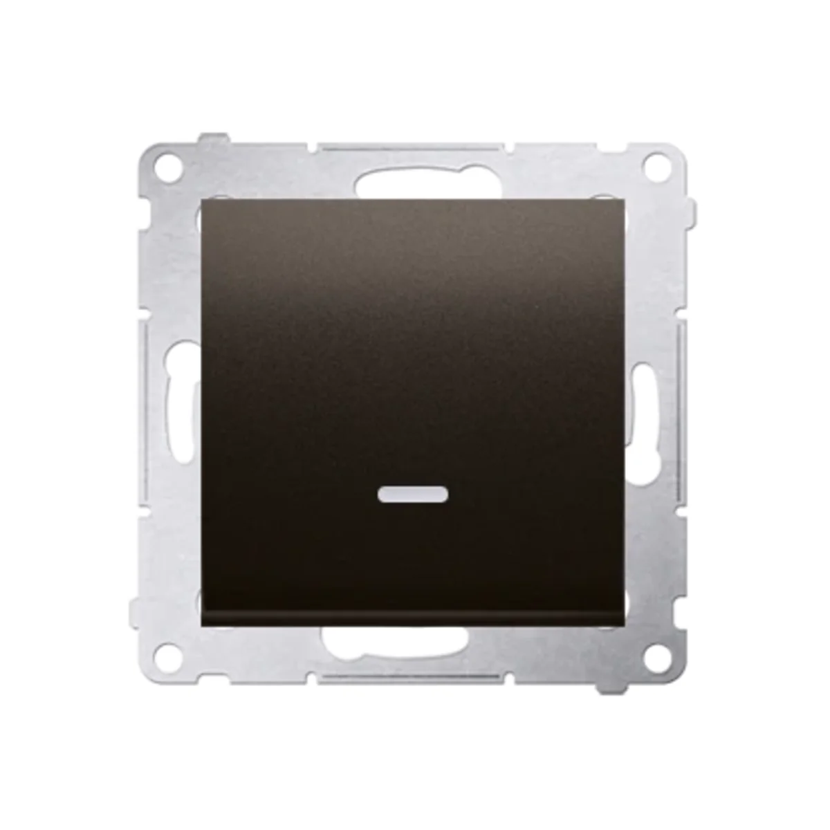 Łącznik jednobiegunowy (bistabilny) z serii Simon 54. Z orientującym podświetleniem LED wymienialnym, w kolorze niebieskim. Do uzyskania klasy bryzgoszczelności IP44 zastosować uszczelkę ramki.