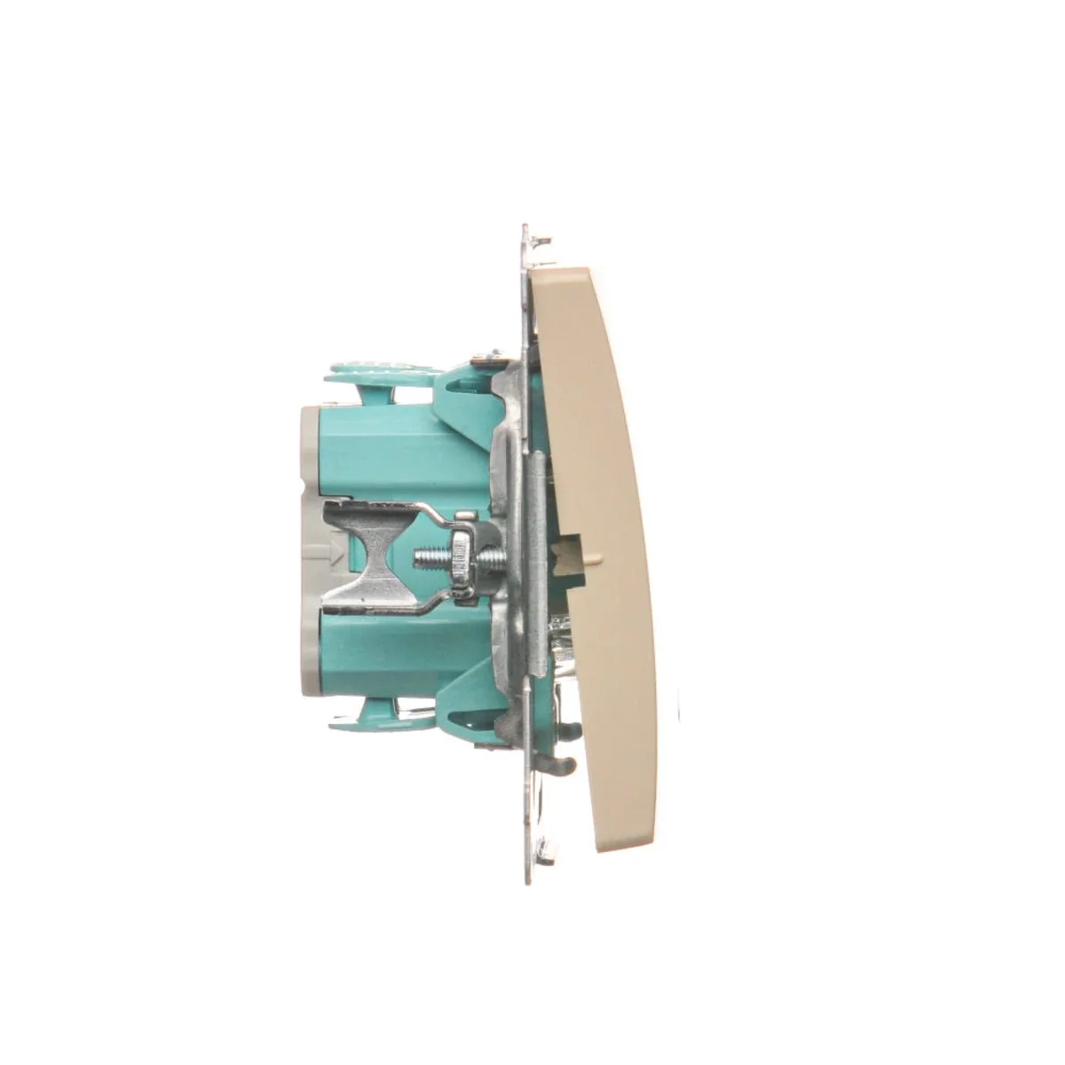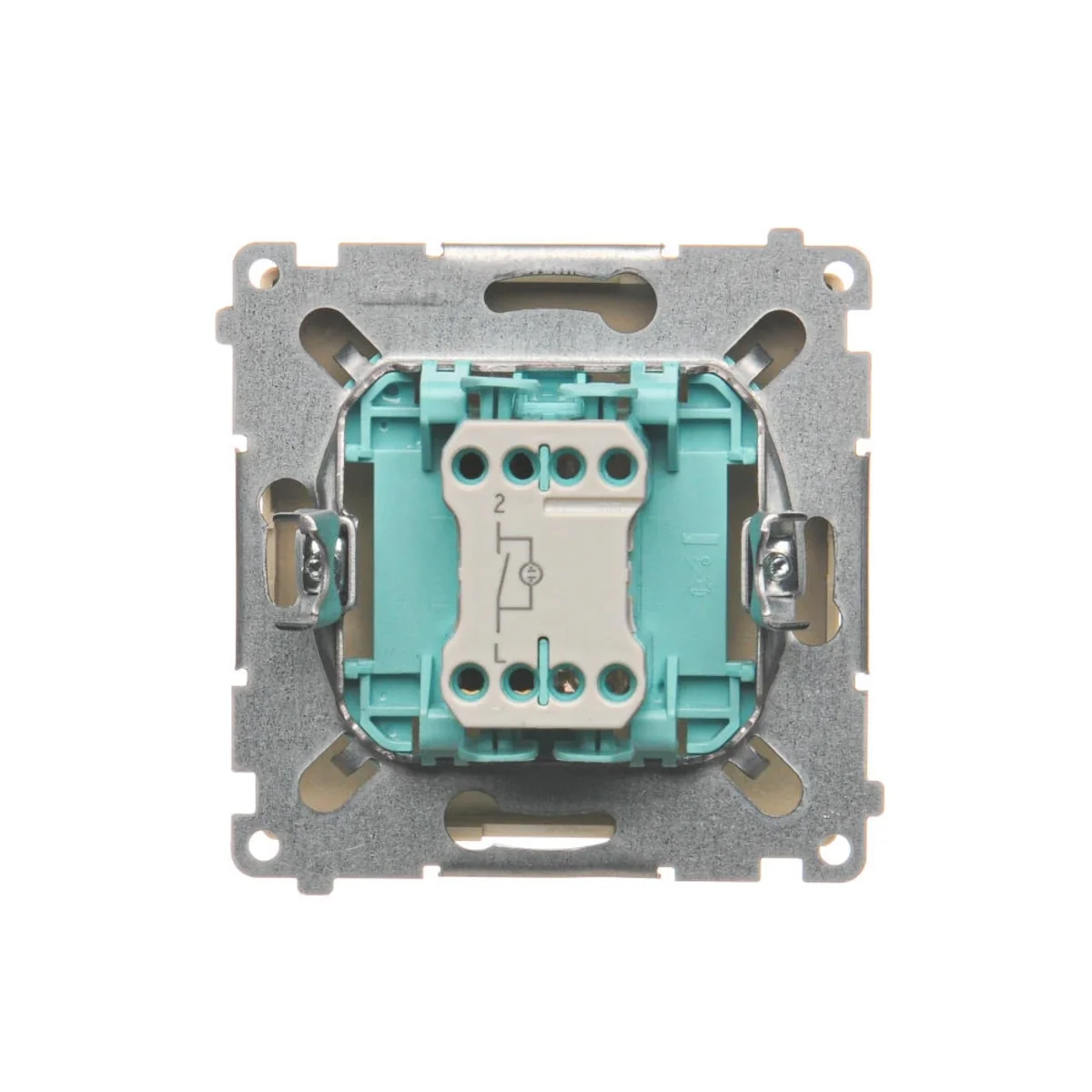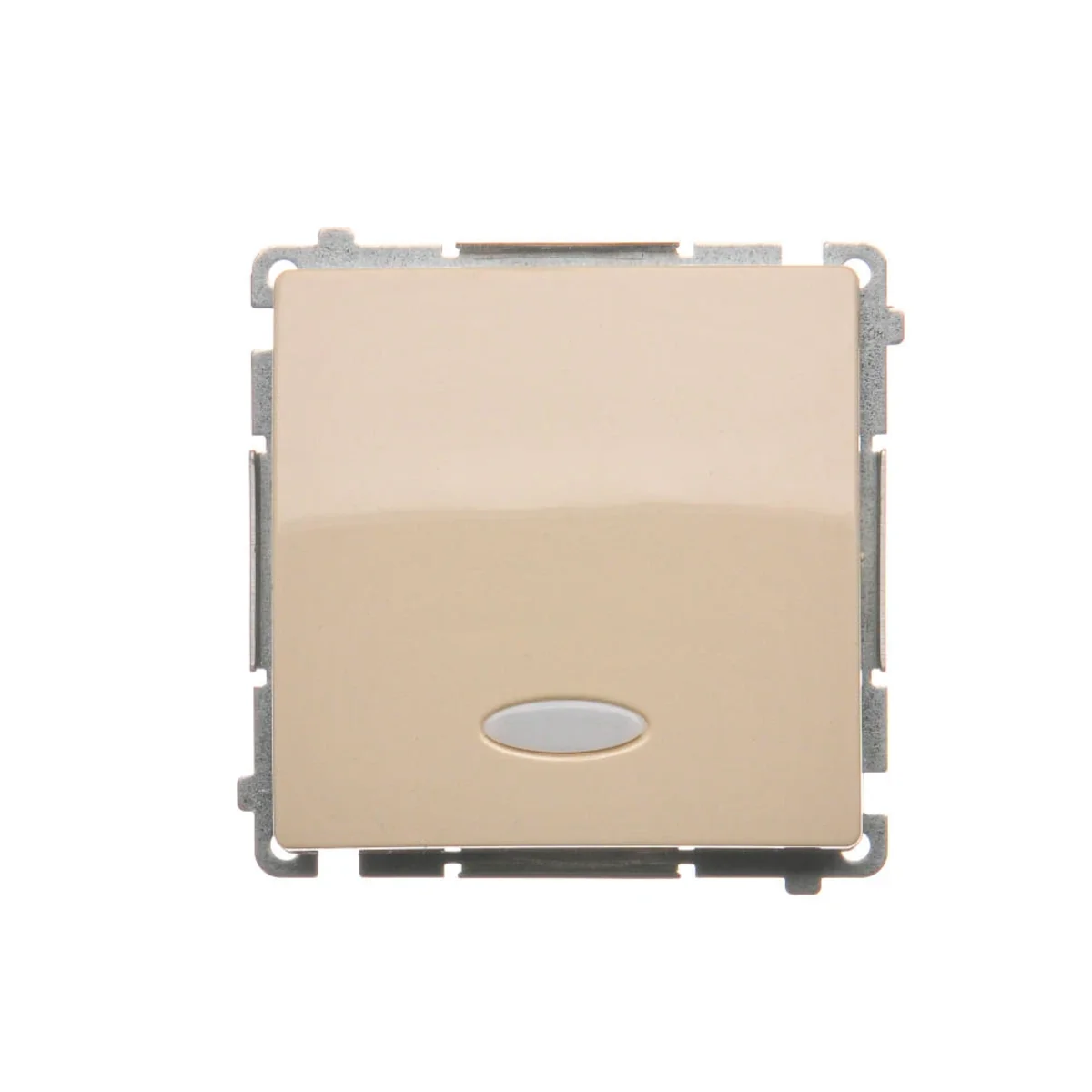 Łącznik jednobiegunowy (bistabilny) z serii Simon Basic. Z podświetleniem LED niewymienialnym, w kolorze niebieskim.