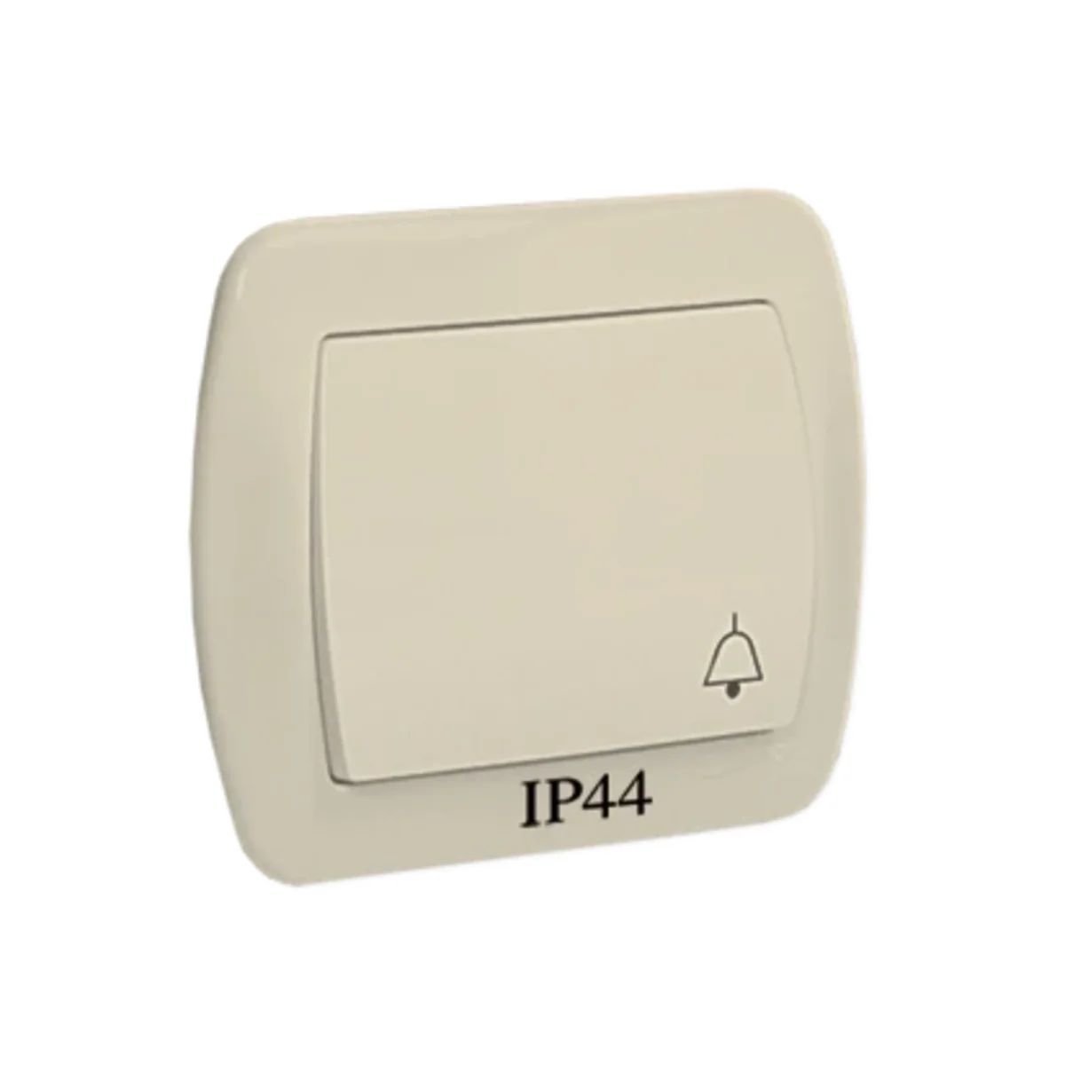 Przycisk "dzwonek" bryzgoszczelny z serii Simon Akord, od producenta Kontakt Simon. Numer katalogowy produktu to AD1B/12. W kolorze beżowym.