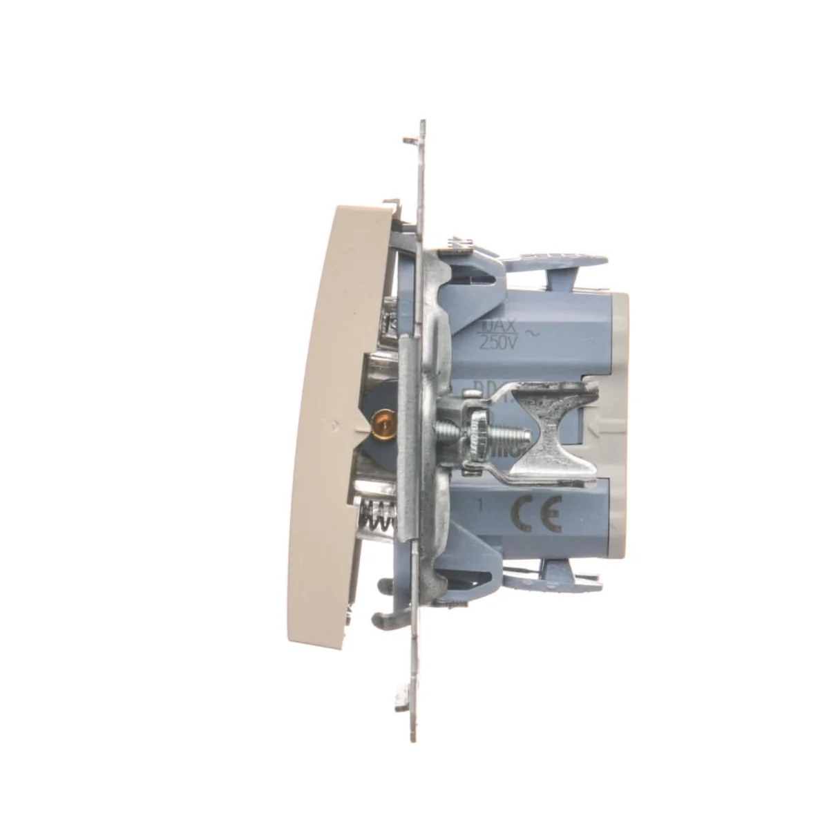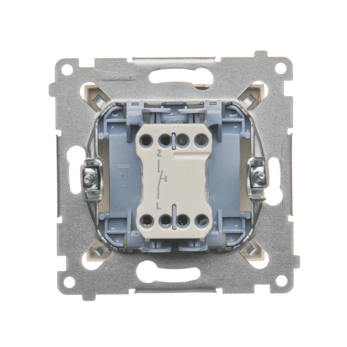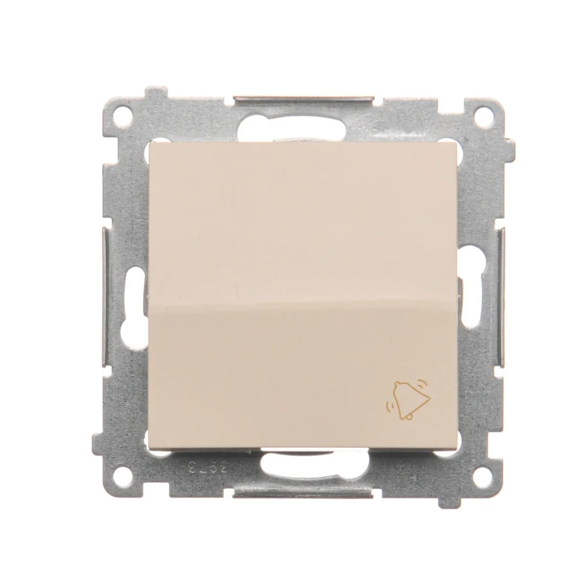 Przycisk "dzwonek" z serii Simon 54, od producenta Kontakt Simon. Numer katalogowy produktu to DD1.01/41. W kolorze kremowym.