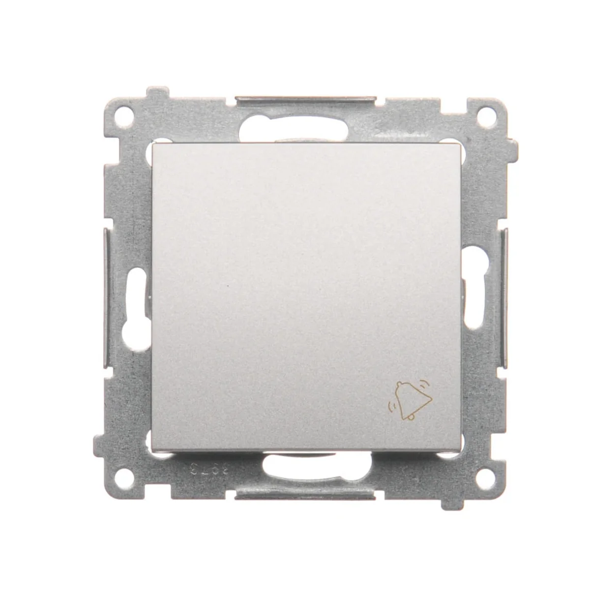 Przycisk "dzwonek" z serii Simon 54, od producenta Kontakt Simon. Numer katalogowy produktu to DD1.01/43. W kolorze srebrny mat, metalizowany.