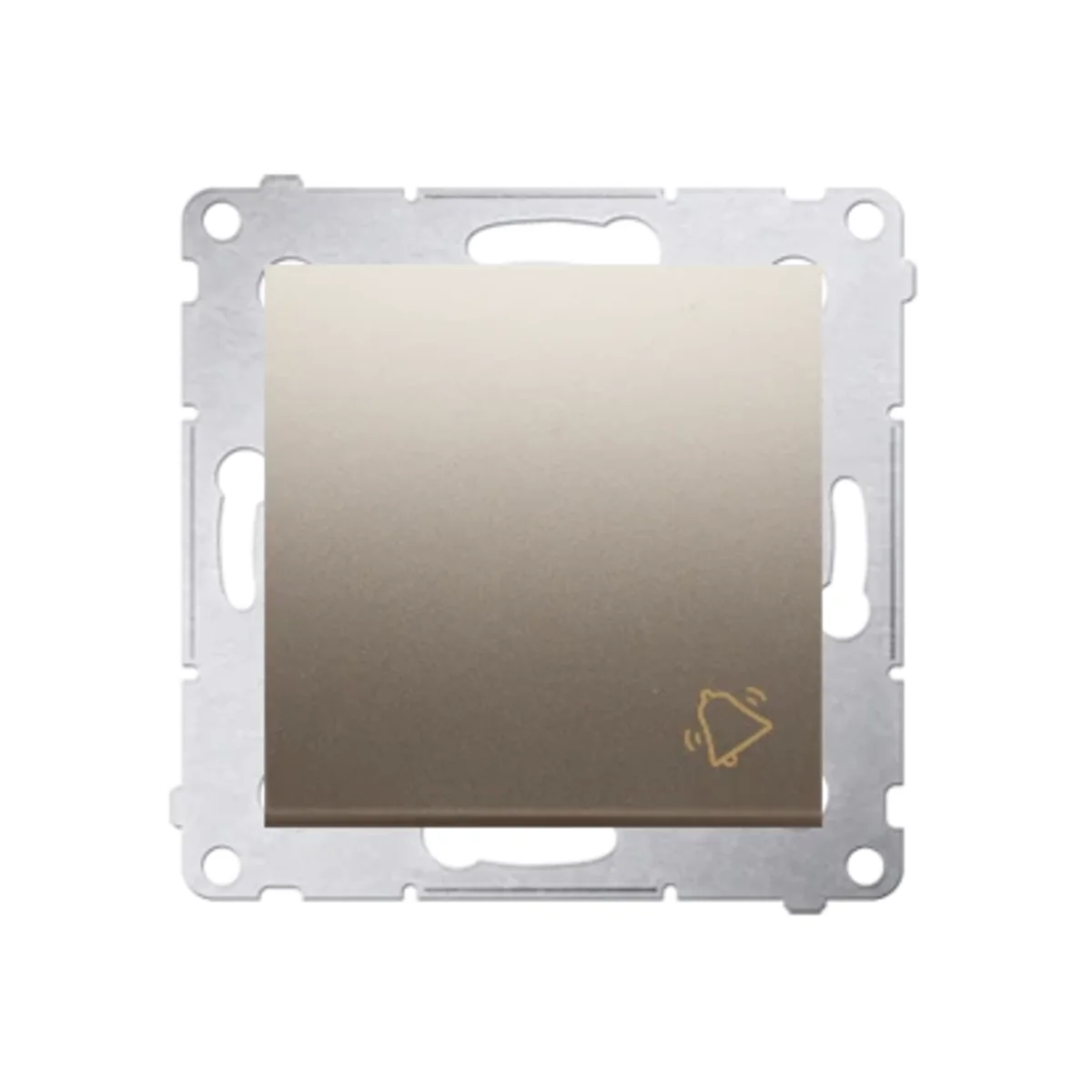 Przycisk "dzwonek" z serii Simon 54, od producenta Kontakt Simon. Numer katalogowy produktu to DD1.01/44. W kolorze złoty mat, metalizowanym.