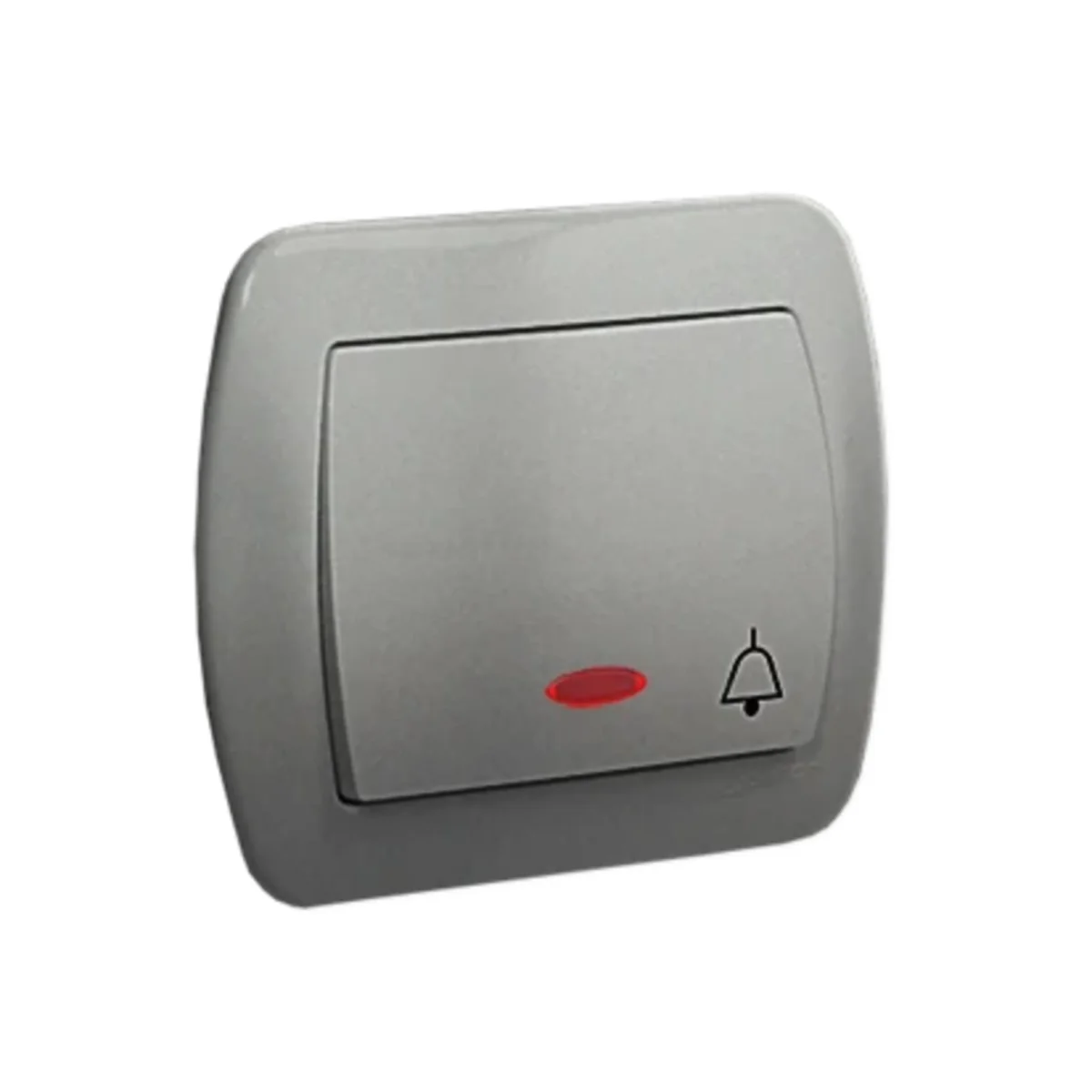 Przycisk "dzwonek" z podświetleniem, z serii Simon Akord, od producenta Kontakt Simon. Numer katalogowy produktu to AD1L/26. W kolorze aluminiowym, metalizowanym.