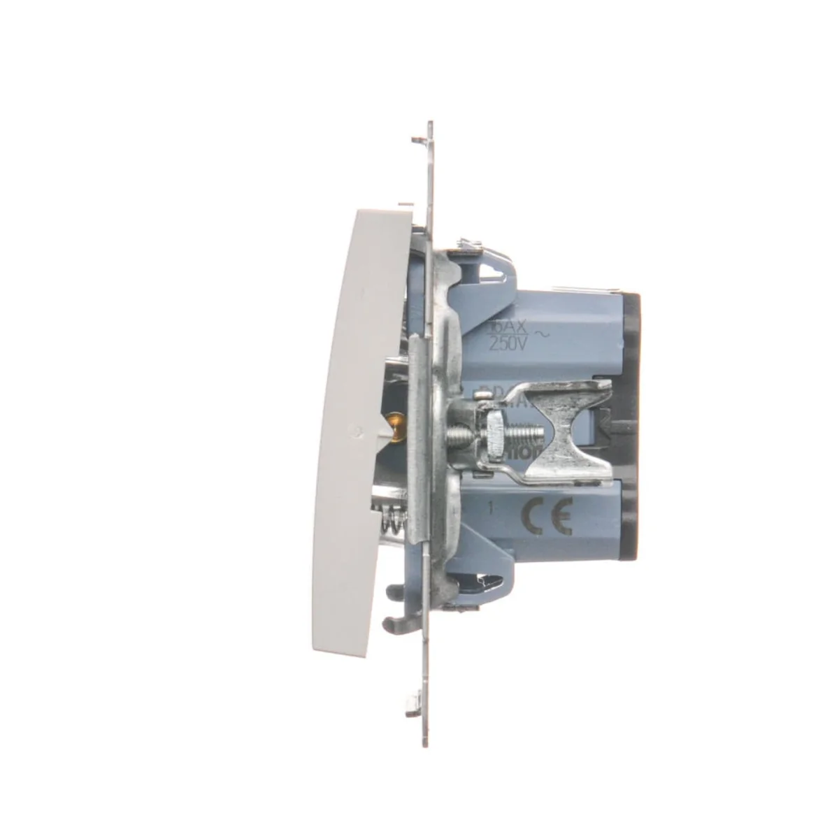 Przycisk zwierny pojedynczy z serii Simon 54, od producenta Kontakt Simon. Numer katalogowy produktu to DP1A.01/11. W kolorze białym.