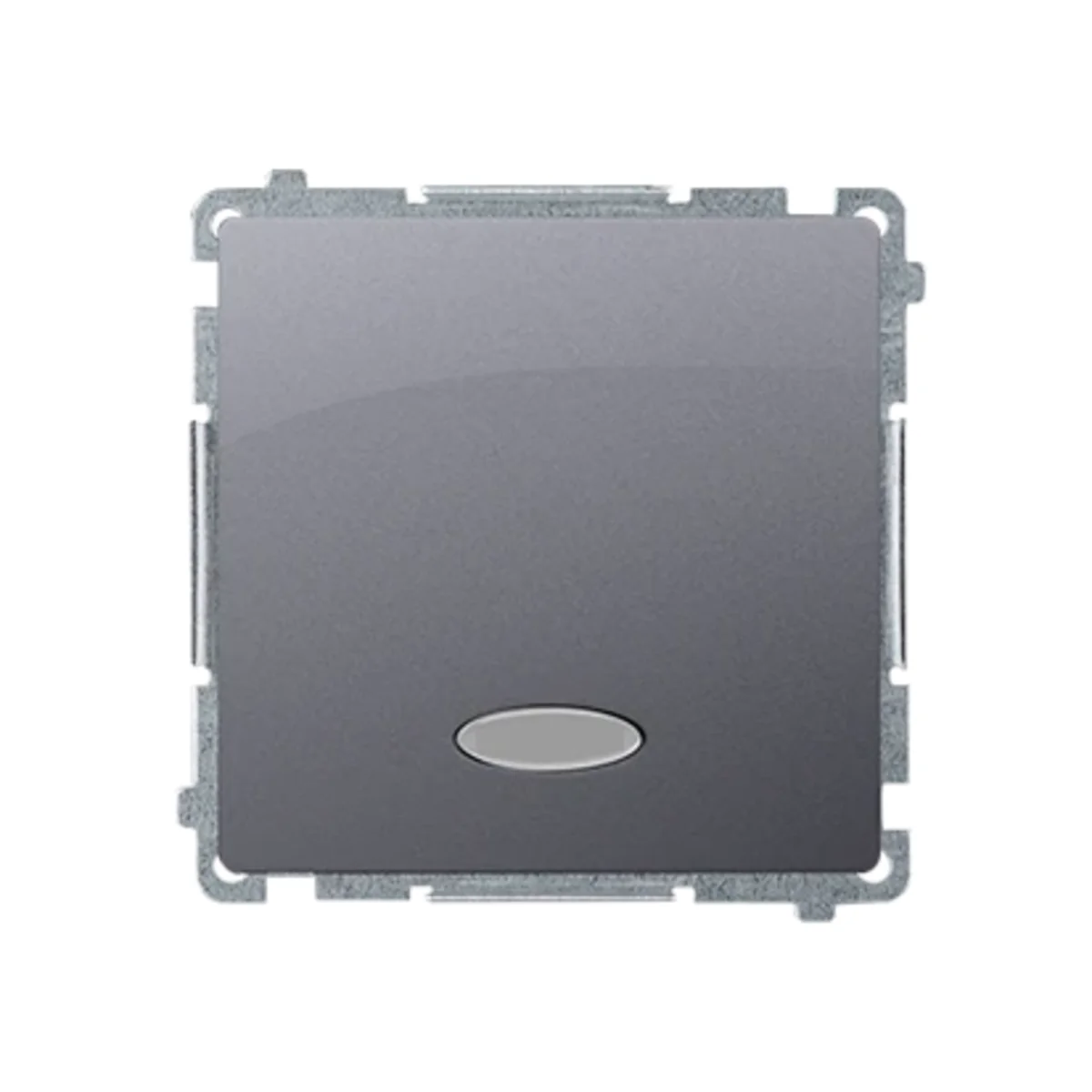 Przycisk zwierny pojedynczy z podświetleniem, z serii Simon Basic, od producenta Kontakt Simon. Numer katalogowy produktu to BMP1L.01/21. W kolorze inox, metalizowany.