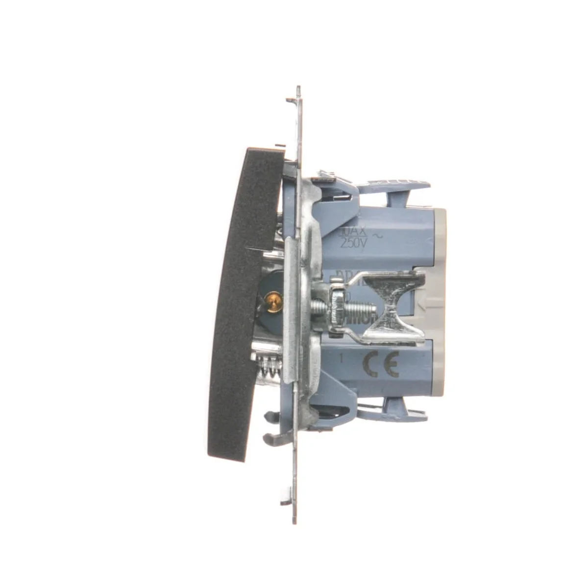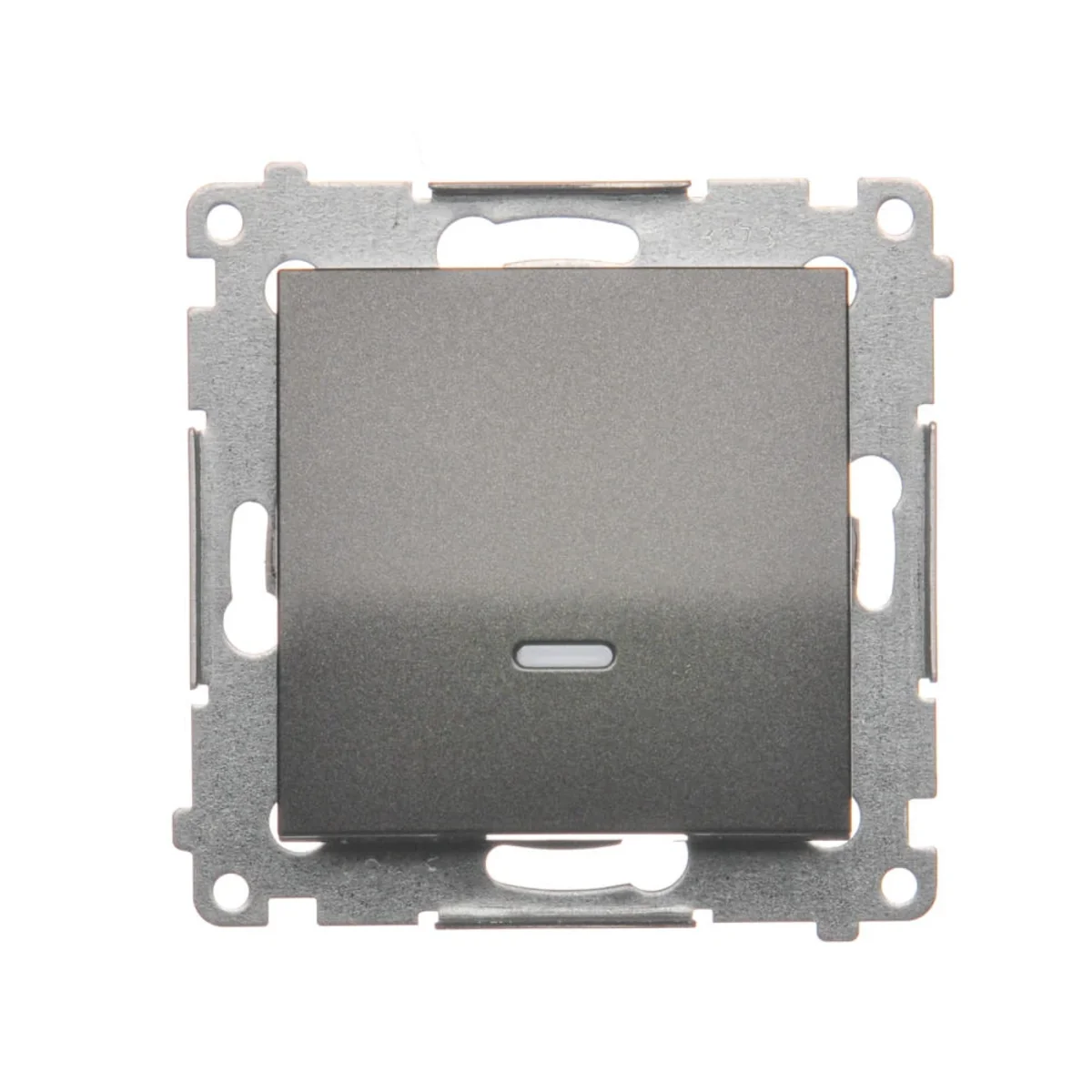 Przycisk zwierny pojedynczy z podświetleniem, z serii Simon 54, od producenta Kontakt Simon. Numer katalogowy produktu to DP1L.01/48. W kolorze antracytowym, metalizowanym.