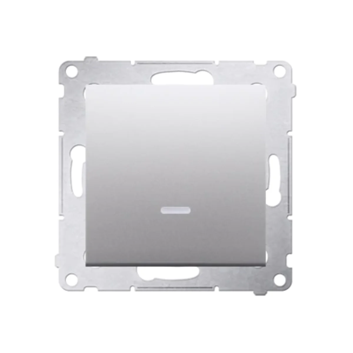Przycisk zwierny pojedynczy z podświetleniem, z serii Simon 54, od producenta Kontakt Simon. Numer katalogowy produktu to DP1L.01/43. W kolorze srebrny mat, metalizowany.