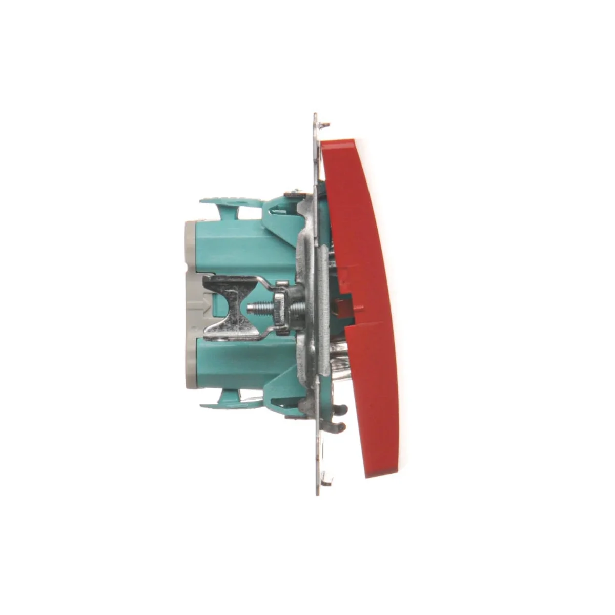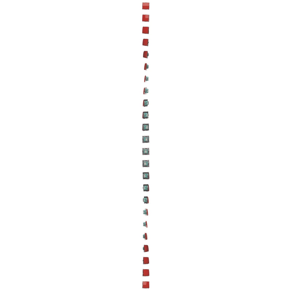 Przycisk "światło" z serii Simon Basic, od producenta Kontakt Simon. Numer katalogowy produktu to BMS1.01/22. W kolorze czerwonym.
