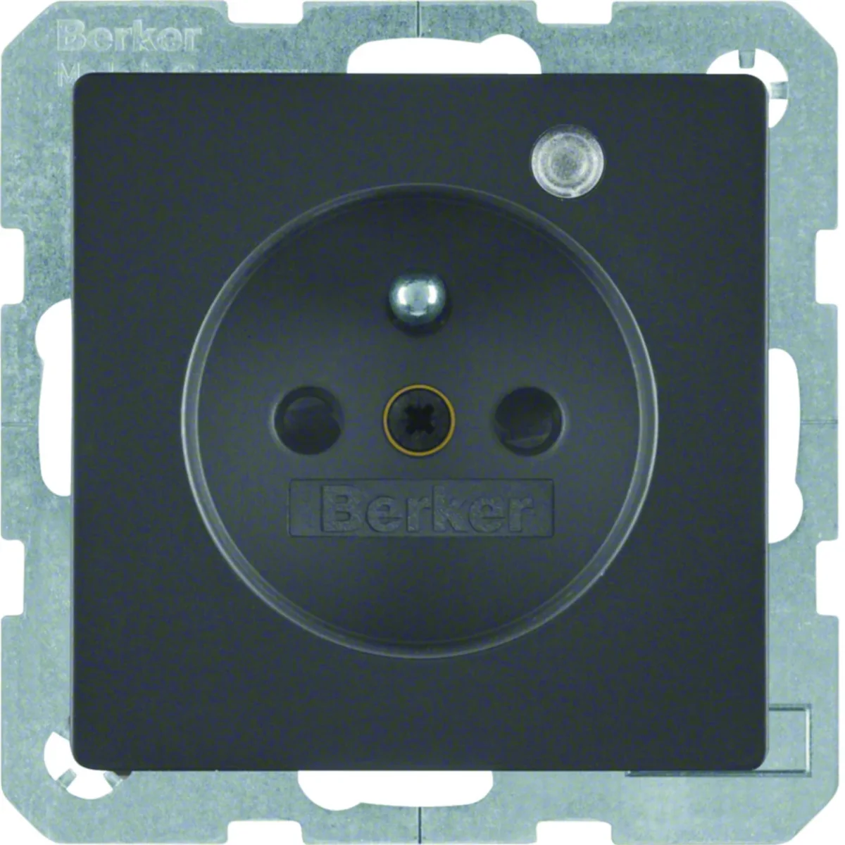 Gniazdo z uziemieniem i diodą kontrolną LED, z podwyższoną ochroną styków, z serii Berker Q.1/Q.3.
