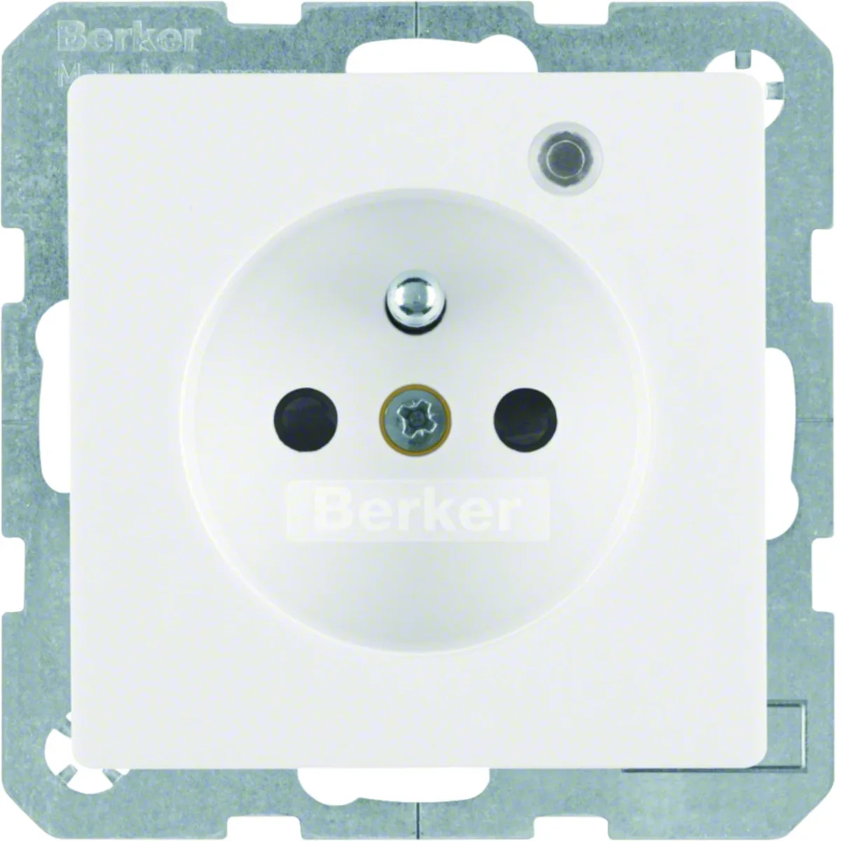 Gniazdo z uziemieniem i diodą kontrolną LED, z podwyższoną ochroną styków, z serii Berker Q.1/Q.3.