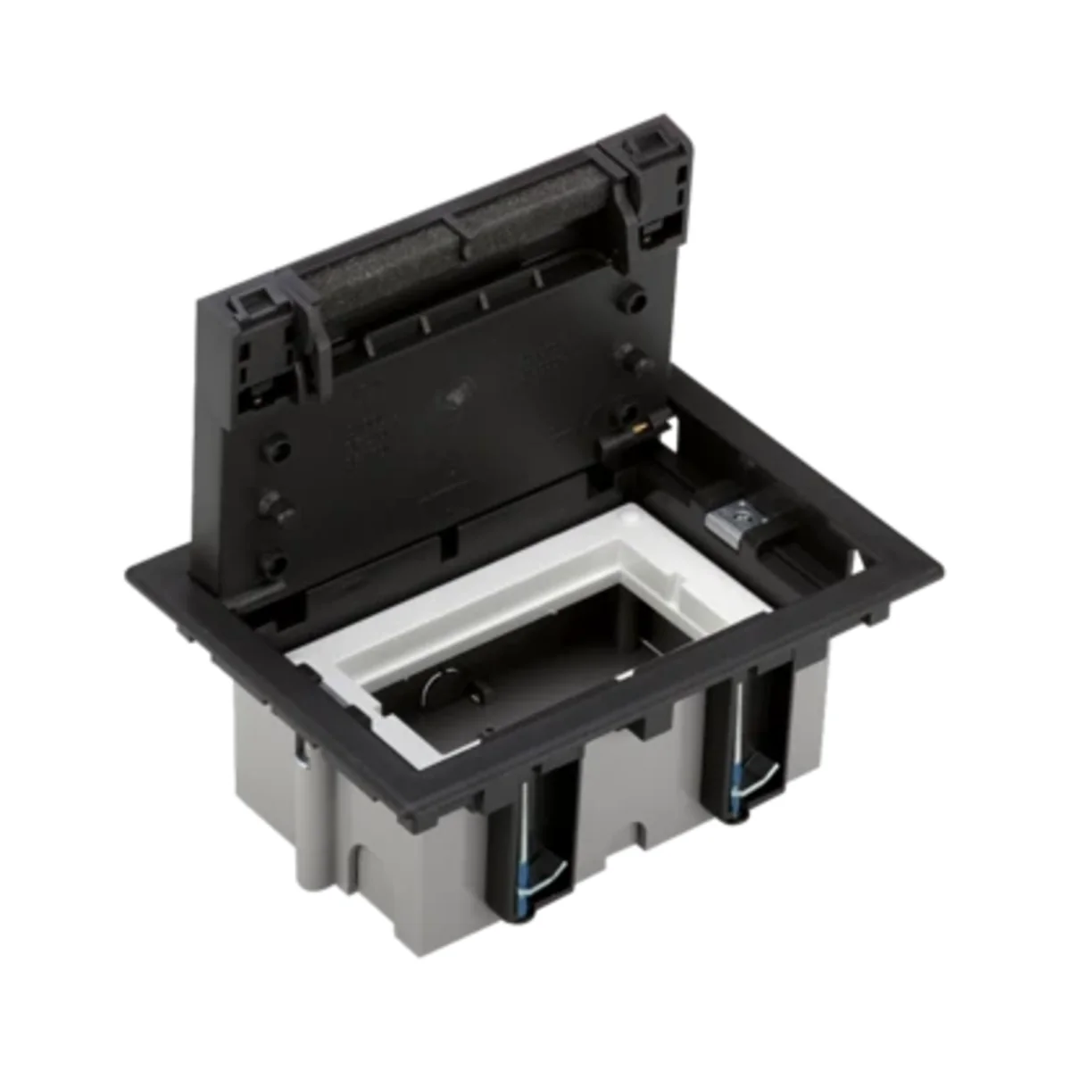 Instalacje podpodłogowe stanowią standard instalacji elektrycznych i teletechnicznych w nowoczesnych miejscach pracy. Zastosowanie puszki podłogowej serii SF umożliwia prosty i szybki dostęp do mediów w miejscach oddalonych od ścian. Puszka została wykonana z tworzywa sztucznego w kolorze szary grafit. Warto podkreślić, iż posiada stopień ochrony IP40. Sposób montażu puszki jest następujący - w podłodze podniesionej lub w podłodze wylewanej. Możliwość regulowania głębokości w zakresie 70-105mm. Puszka posiada jeden moduł SIMON 500 oraz dwa K45.