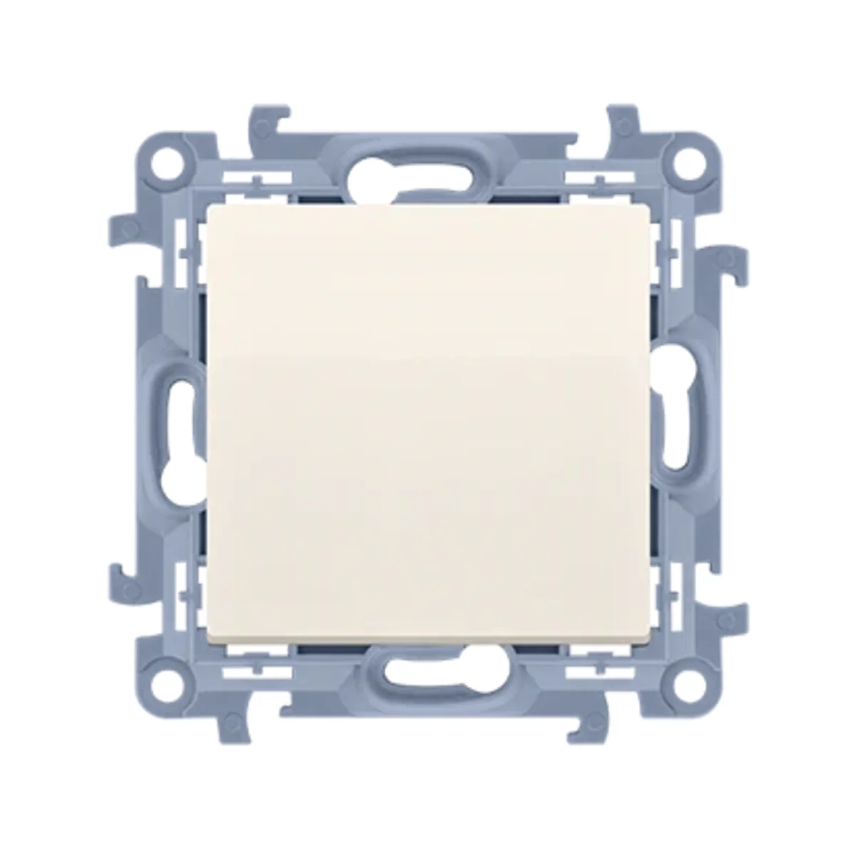 Łącznik jednobiegunowy (bistabilny) z serii Simon 10. Do uzyskania klasy bryzgoszczelności IP44 zastosować uszczelkę ramki.