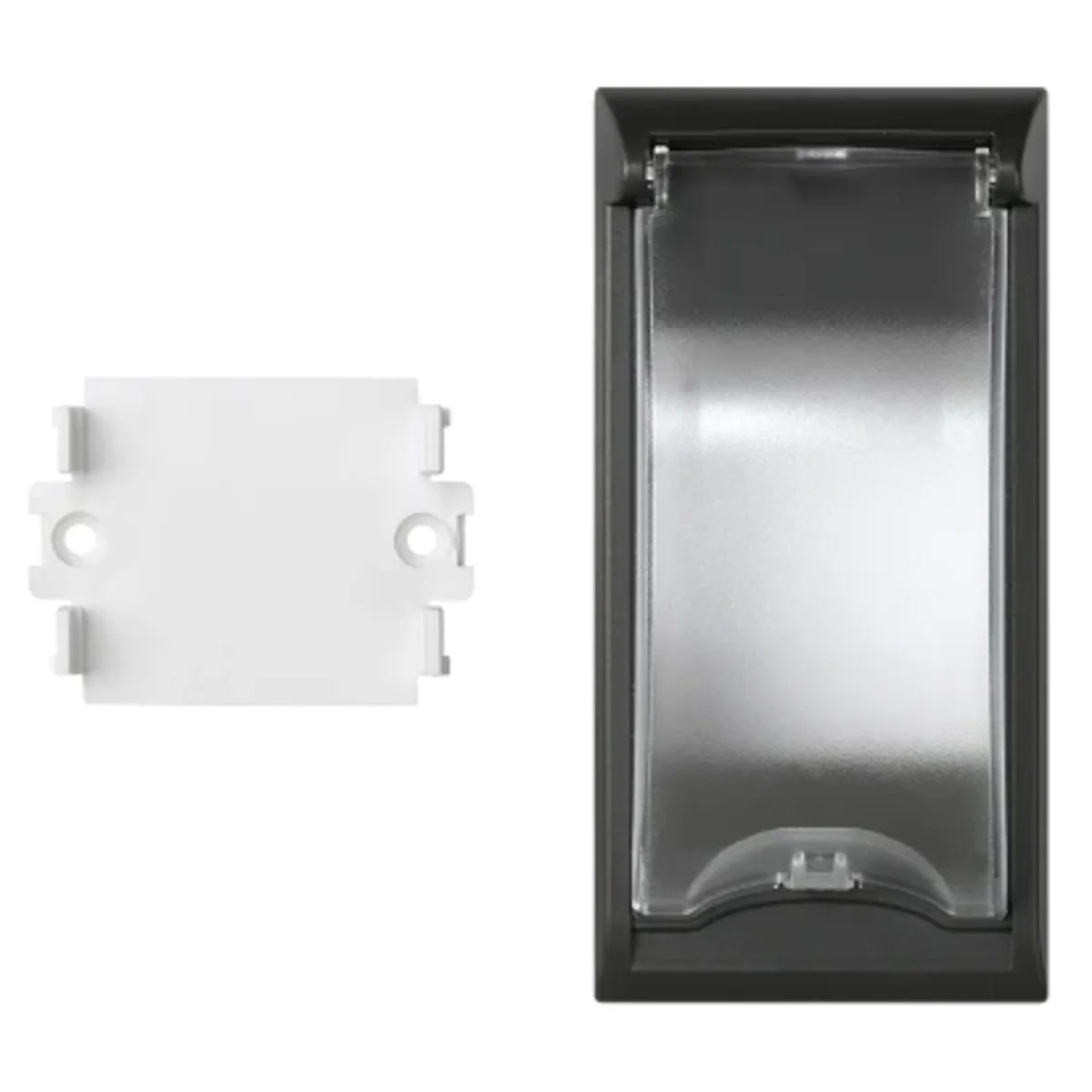 Płytka SIMON 500 z pokrywą do aparatury modułowej 2-polowej, do puszek podłogowych - możliwość montażu dowolnej aparatury zabezpieczającej lub automatyki montowanej na szynie DIN. Została wykonana z tworzywa sztucznego w kolorze szarego grafitu. Zabezpieczenie powierzchni jest naturalne, a wykończenie matowe. Montaż - do wbudowania.