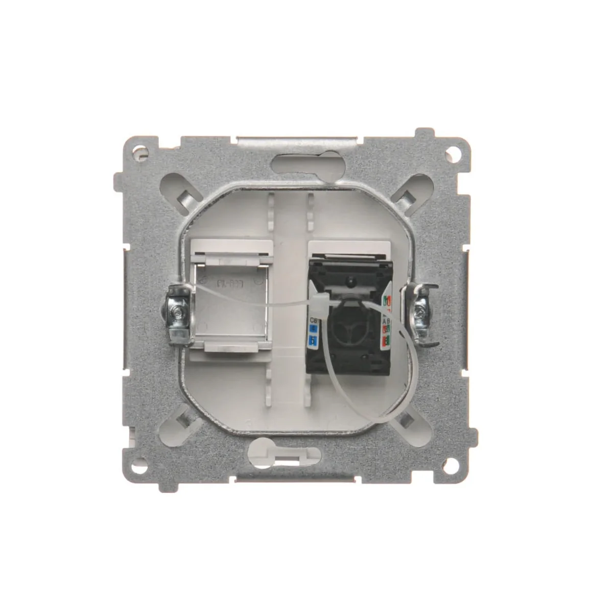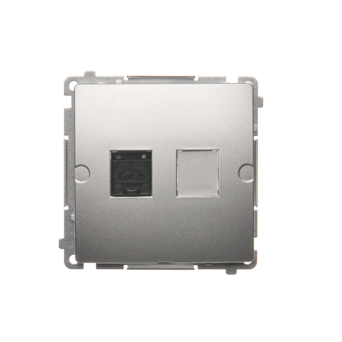 Gniazdo komputerowe pojedyncze RJ45 kategoria 6, z przesłoną przeciwkurzową.