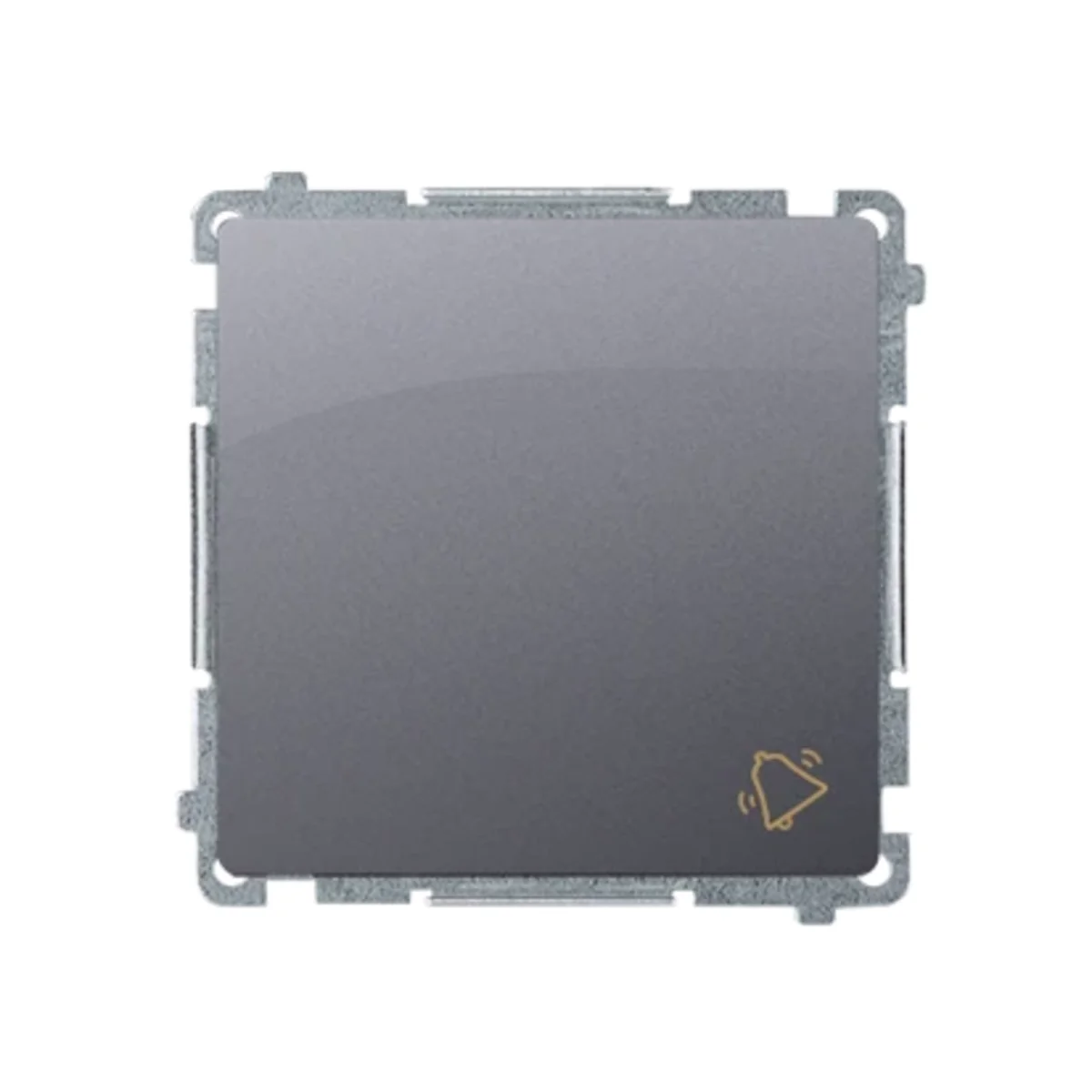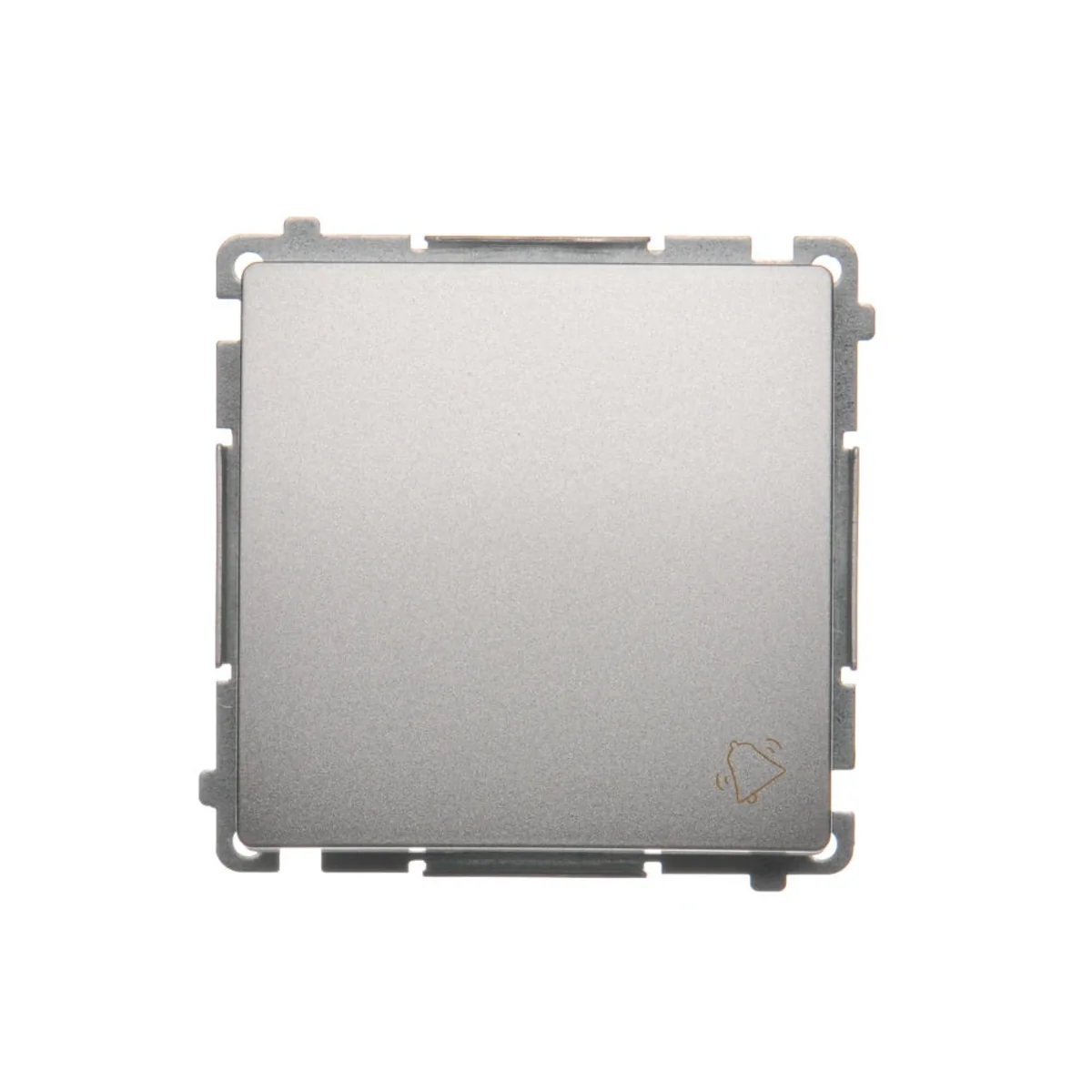 Przycisk "dzwonek" z serii Simon Basic, od producenta Kontakt Simon. Numer katalogowy produktu to BMD1A.01/43. W kolorze srebrnym matowym, metalizowanym.