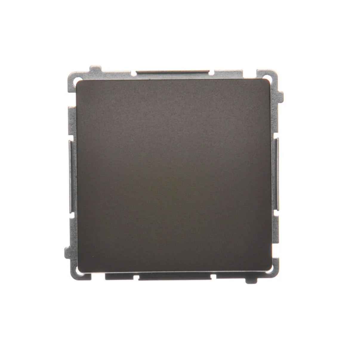 Przycisk zwierny pojedynczy bez piktogramu, z serii Simon Basic, od producenta Kontakt Simon. Numer katalogowy produktu to BMP1.01/47. W kolorze czekoladowy mat, metalizowanym.